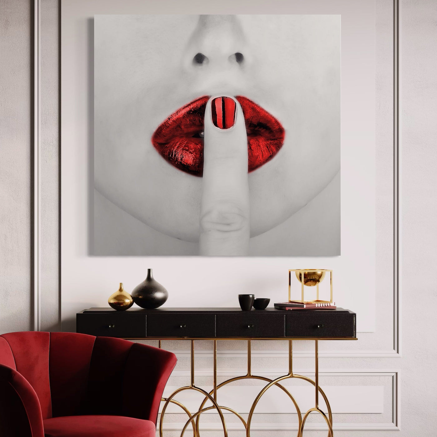 Tablou Canvas Premium LuxCanva® A1057, Red Lips , Senzual, Rosu, Nails, Abstract, Culori Vibrante - 50 X 50