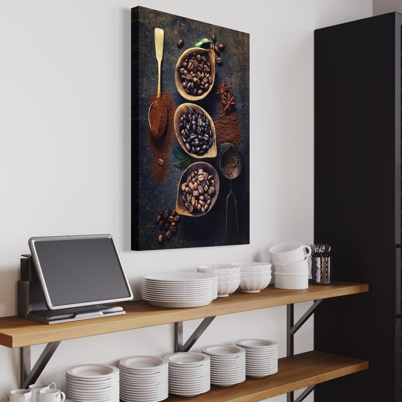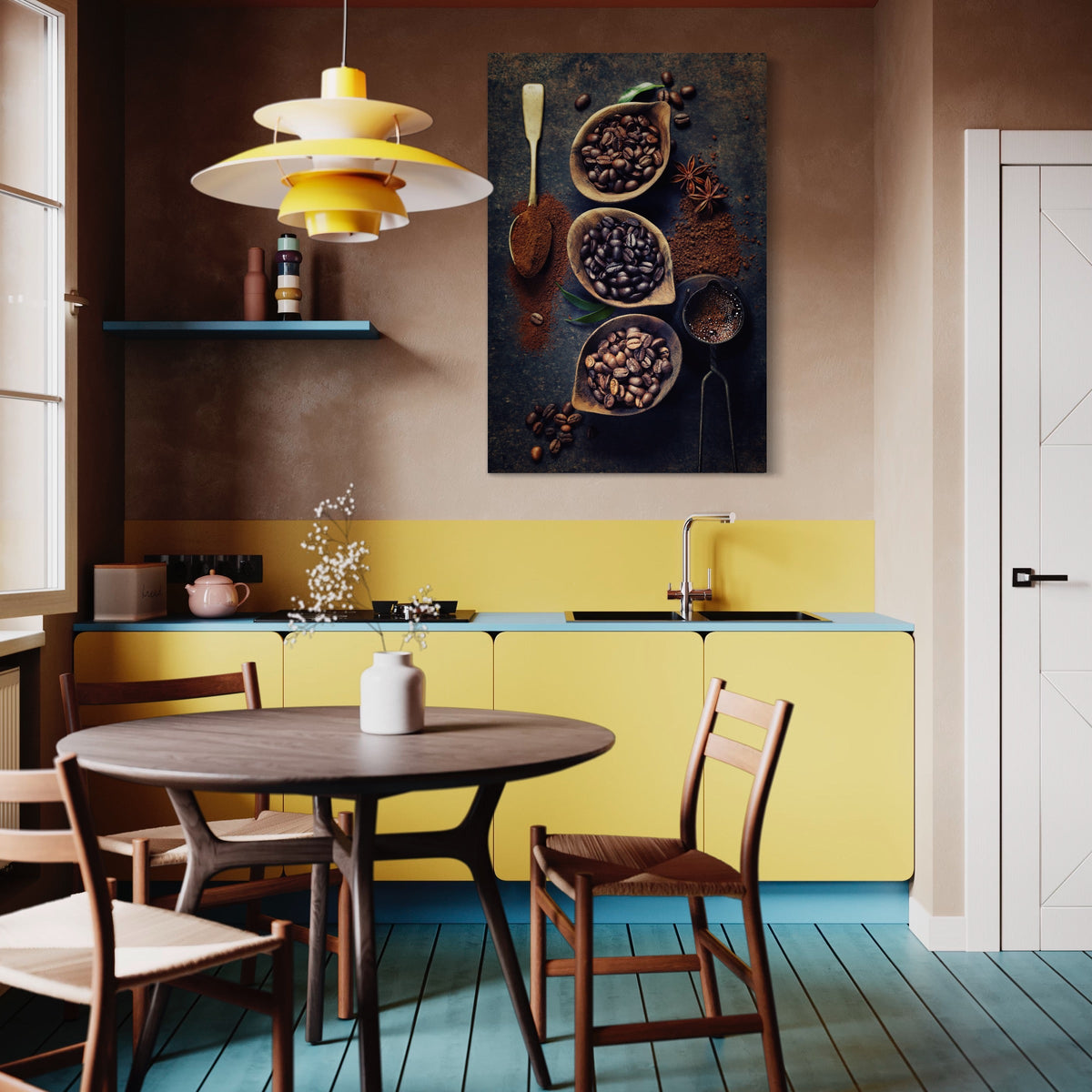 Tablou Canvas Premium LuxCanva® A1112, Arta Cafelei , Aroma Cafea, Lingura, Boabe Cafea, Culori Vibrante - 60 X 90