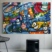Tablou Canvas Premium LuxCanva® A1350, Graffiti Wall Art , Living, Decorativ, Animatie, Arta Stradala, Camera Copil, Game Room, Culori Vibrante - 40 X 60
