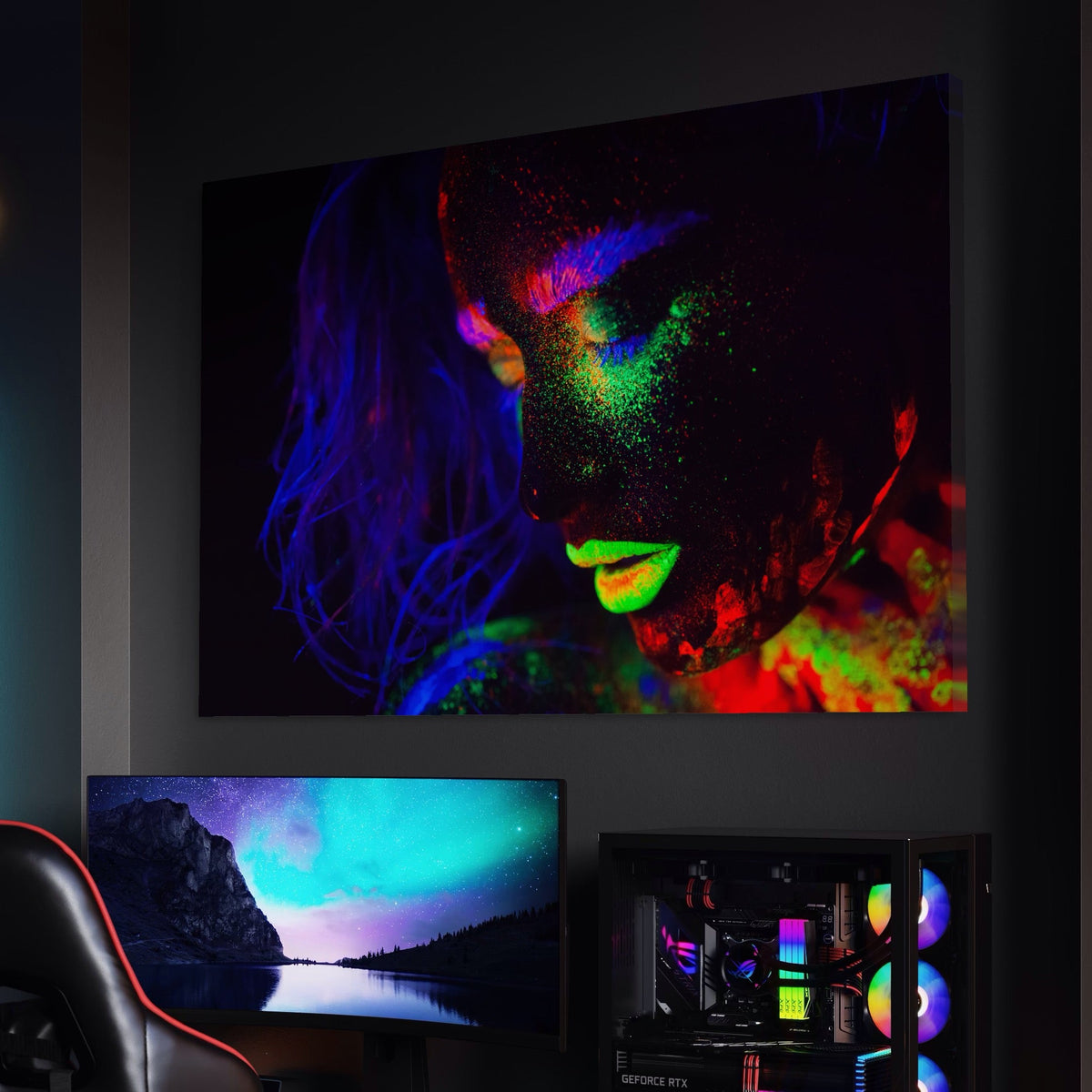 Tablou Canvas Premium LuxCanva® A1357, Colorful Girl , Frumusete, Neon, Gliter, Fosforescent, Culori Vibrante - 40 X 60