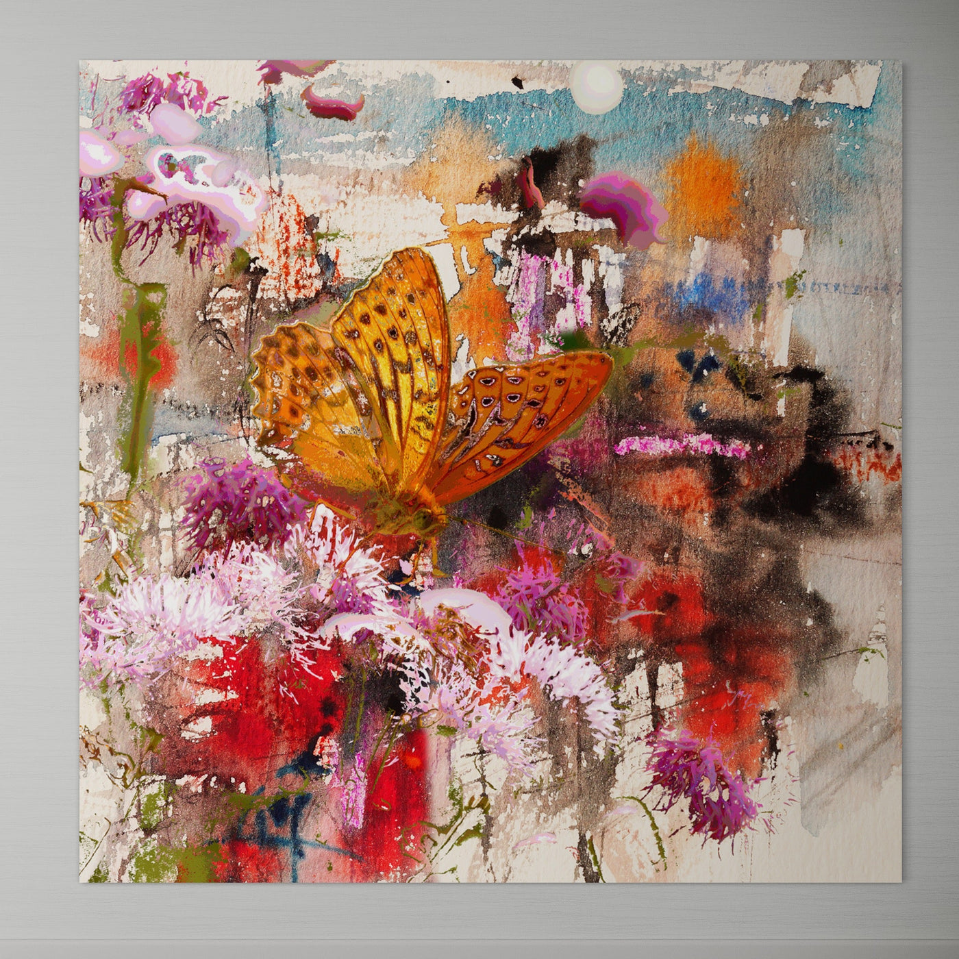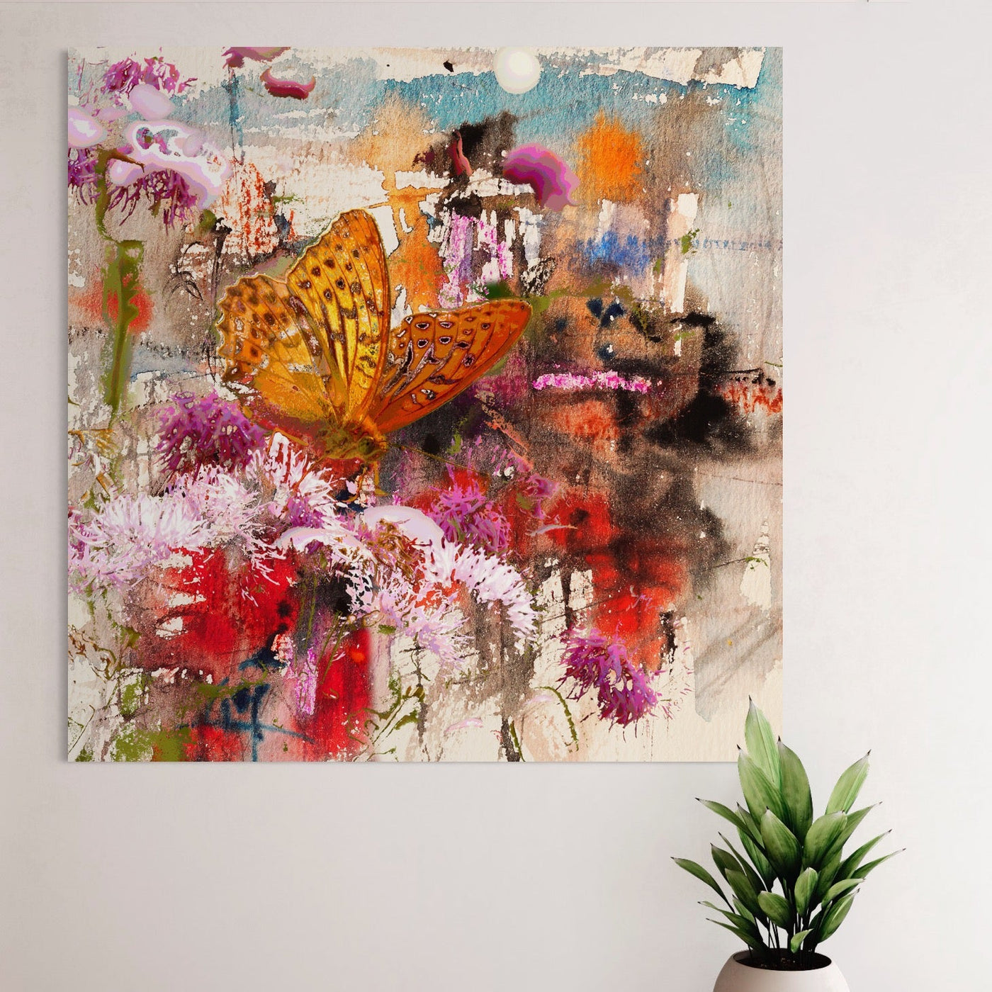 Tablou Canvas Premium LuxCanva® B1121, Flori Si Fluturi , Culori, Living, Flori, Mireasma, Dormitor, Fluture, Primavara, Culori Vibrante - 50 X 50