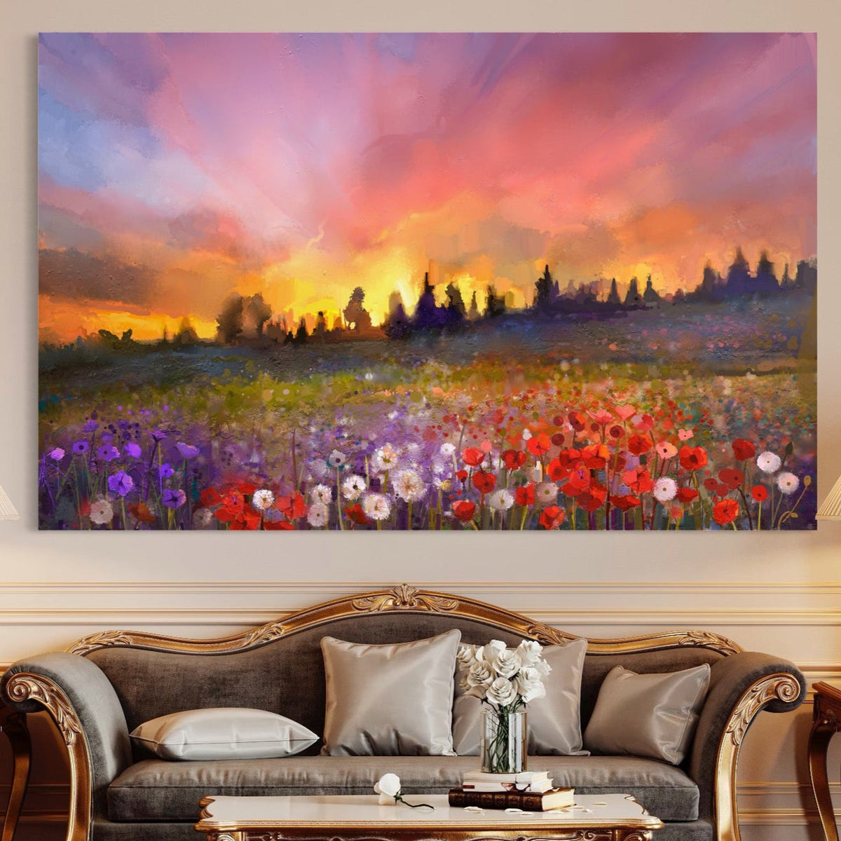 Tablou Canvas Premium LuxCanva® B1128, Vara Pe Campul Cu Flori , Flori, Campie, Living, Vara, Natura, Culori Vibrante - 50 X 70