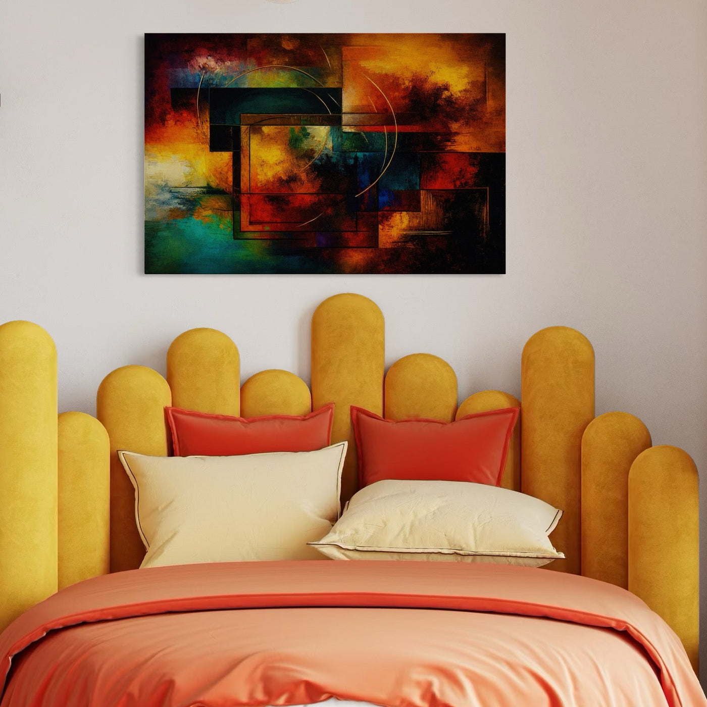 Tablou Canvas Premium, LuxCanva® C1271, Cercul focului, Geometrie, Culori, Cromatic, Joc, Univers, Emotie, Tensiune, Caldura, Flux, Transformare, Metamorfoza, Dorinta, Birou, Living, Dormitor - 40 X 60