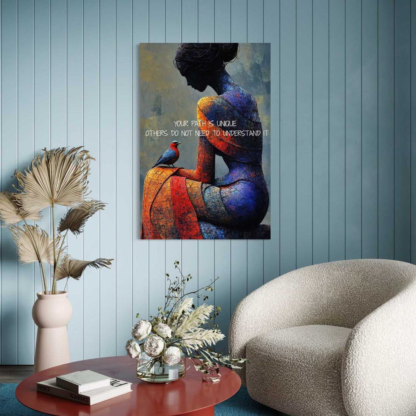 Tablou Canvas Premium, LuxCanva® Q1025, In Ritmul Meu, Pasare, Femeie, Meditatie, Mesaj, Identitate, Echilibru, Inspiratie, Motivatie, Birou, Dormitor - 40 X 60