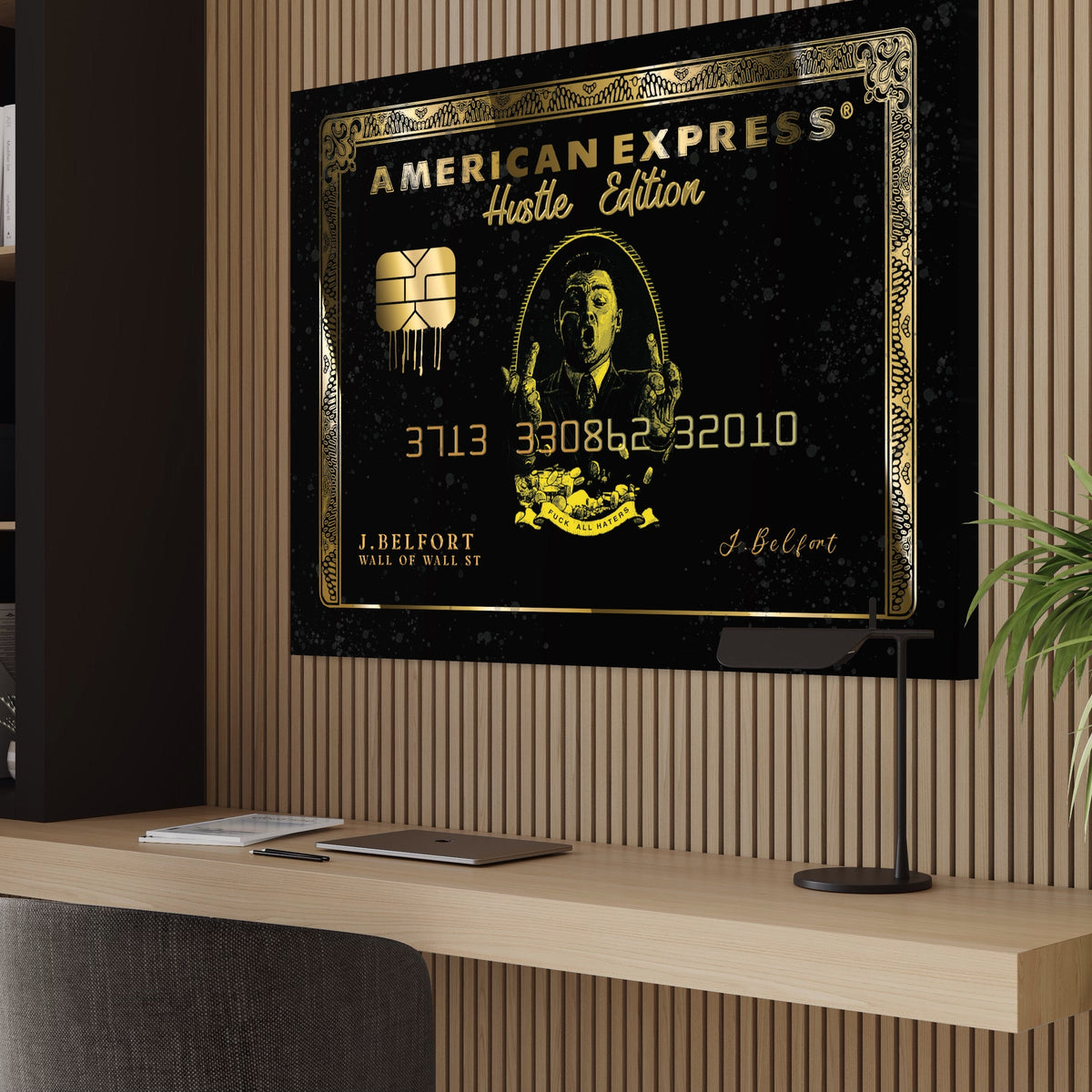 Tablou Canvas Premium LuxCanva® B1039, Hustle Edition , Decorativ, DiCaprio, Money, Wall Street, Auriu - 50 X 70