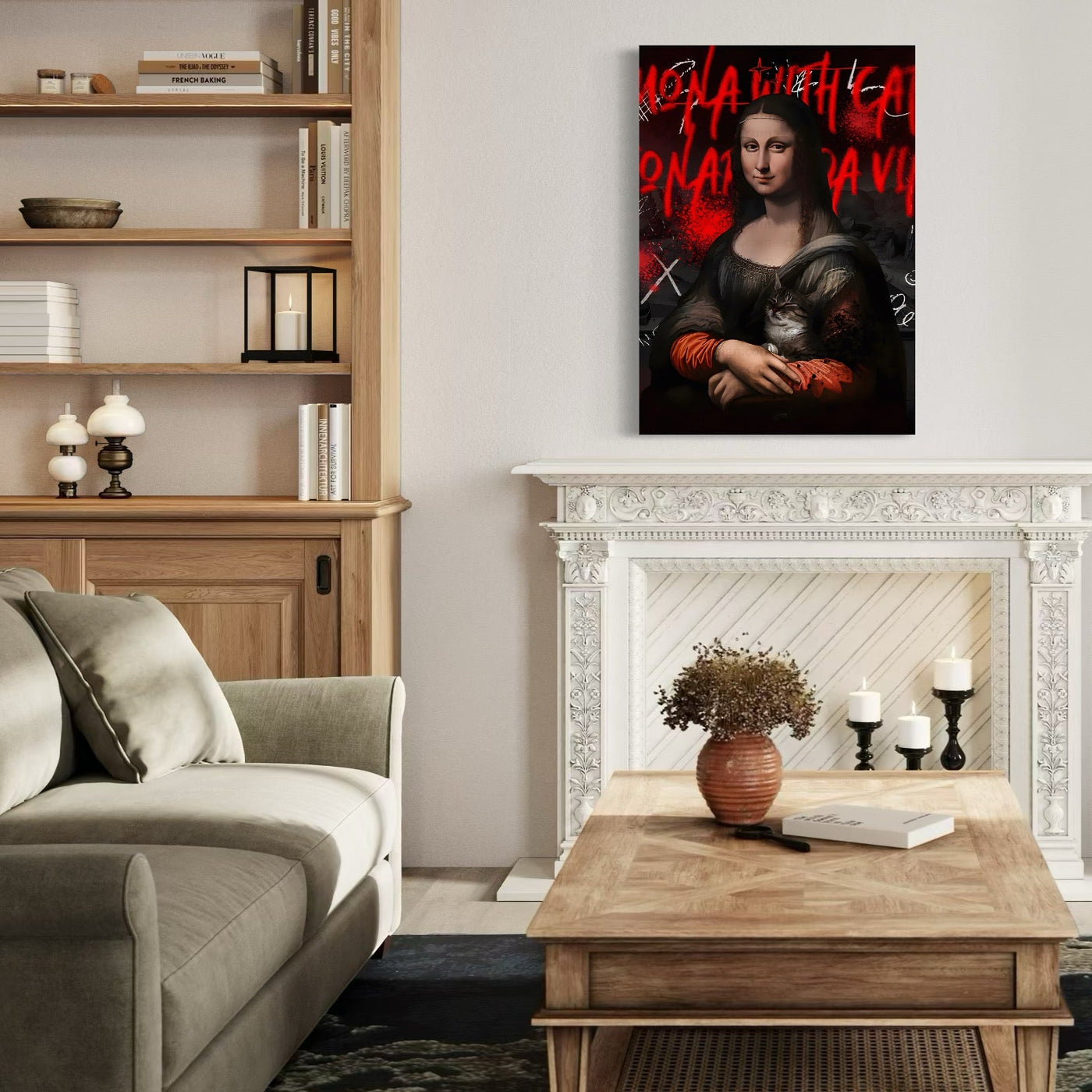 Tablou Canvas Premium LuxCanva® C1109, Lisa With Cat , Culori, Da Vinci, Mona Lisa, Living Room, Painting, Office, Relaxare, Culori Vibrante