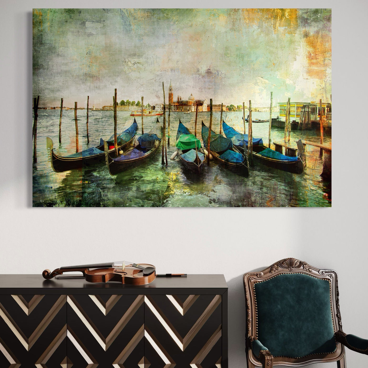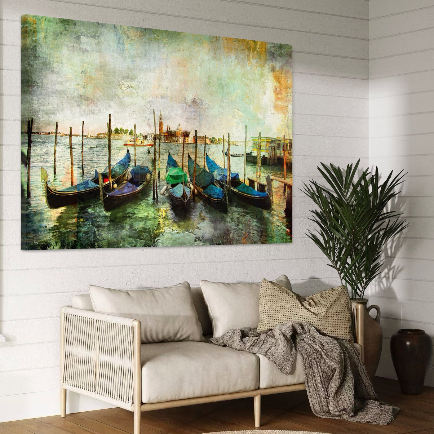 Tablou Canvas Premium LuxCanva® A1071, Barci In Port , Peisaj, Gondola, Mare, Culori Vibrante - 50 X 70