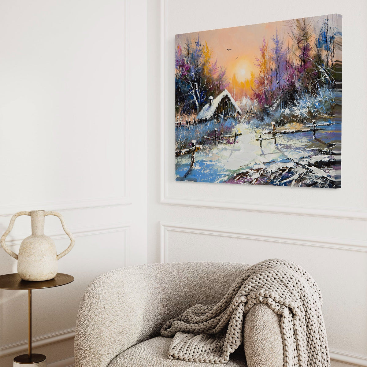 Tablou Canvas Premium LuxCanva® A1100, Iarna In Padure , Peisaj, Casa, Natura, Zapada, Culori Vibrante - 55 X 70