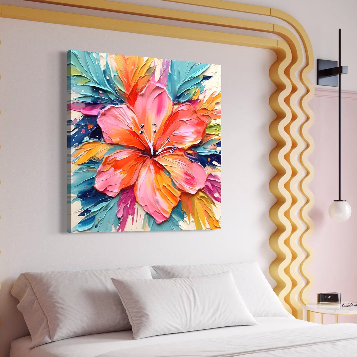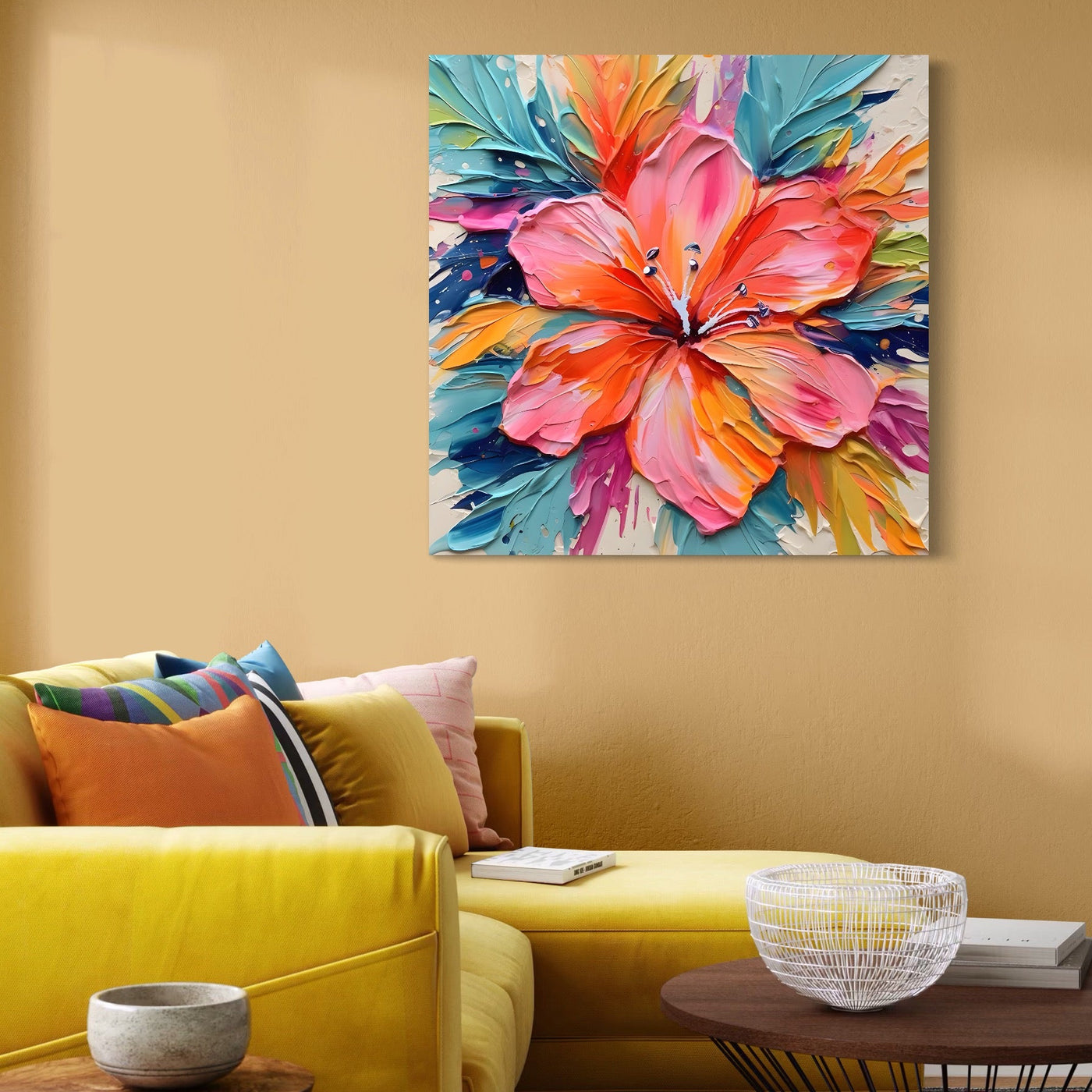 Tablou Canvas Premium LuxCanva® C1176, Floare Multicolora , Natura, Decorativ, Living Room, Culori Vibrante - 50 X 50