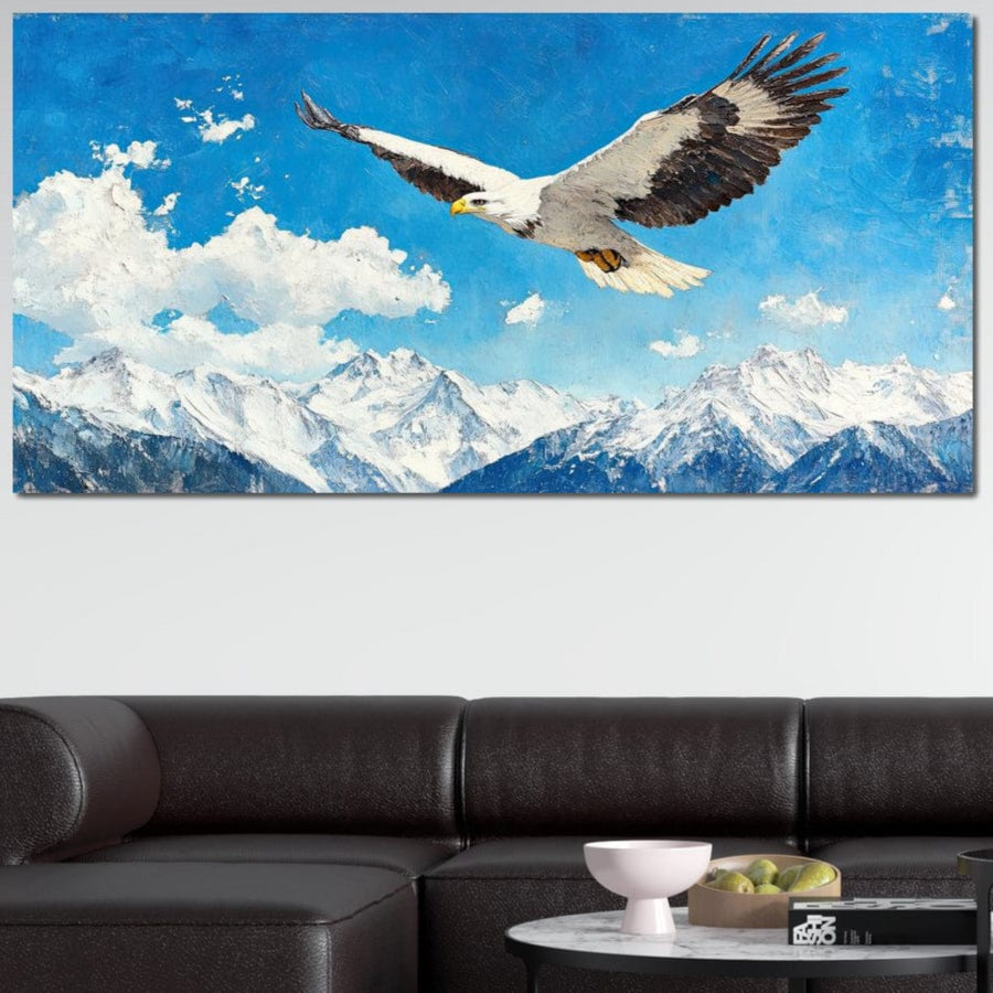 Tablou Canvas Premium, LuxCanva® M1074, Singur printre Alpi, Pasare, Vultur, Aripi, Zbor, Inaltime, Munti, Piscuri, Nori, Zapada, Gheata, Orizont, Libertate, Birou, Living, Camera Copil