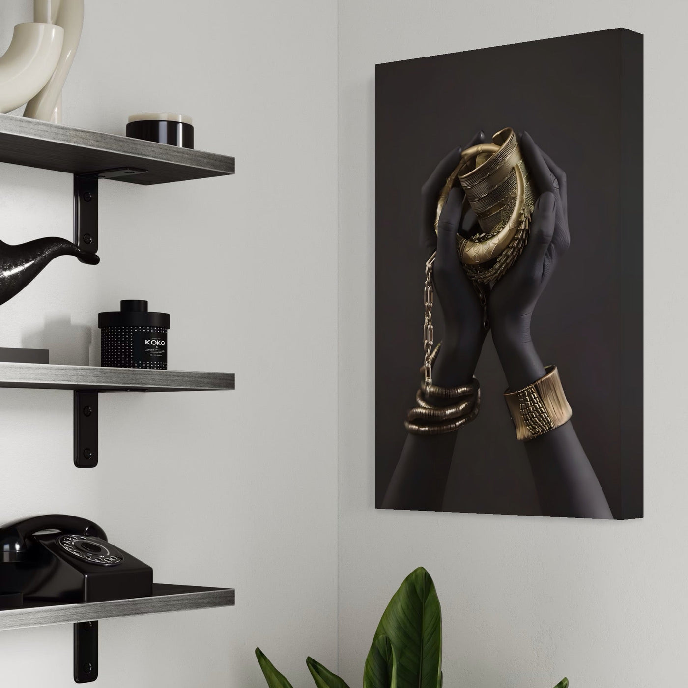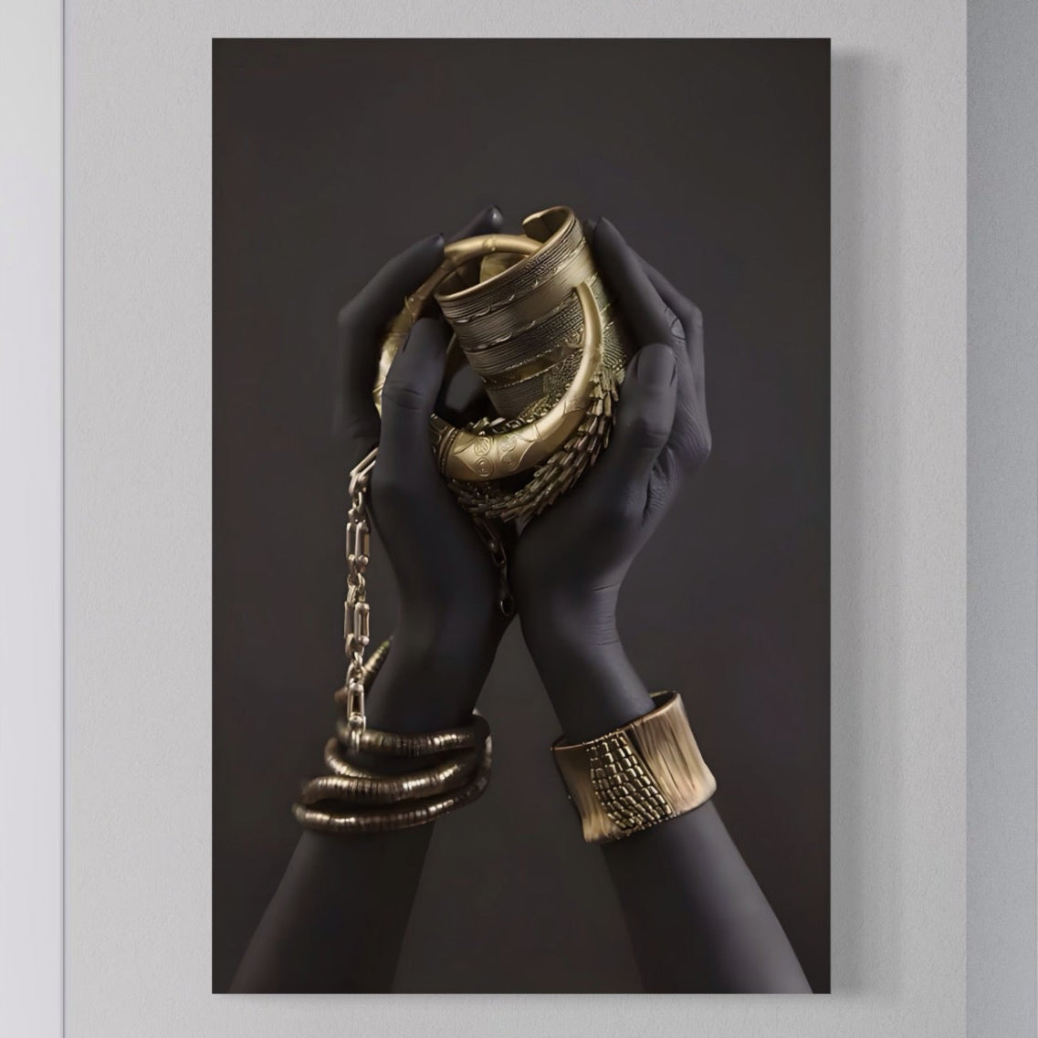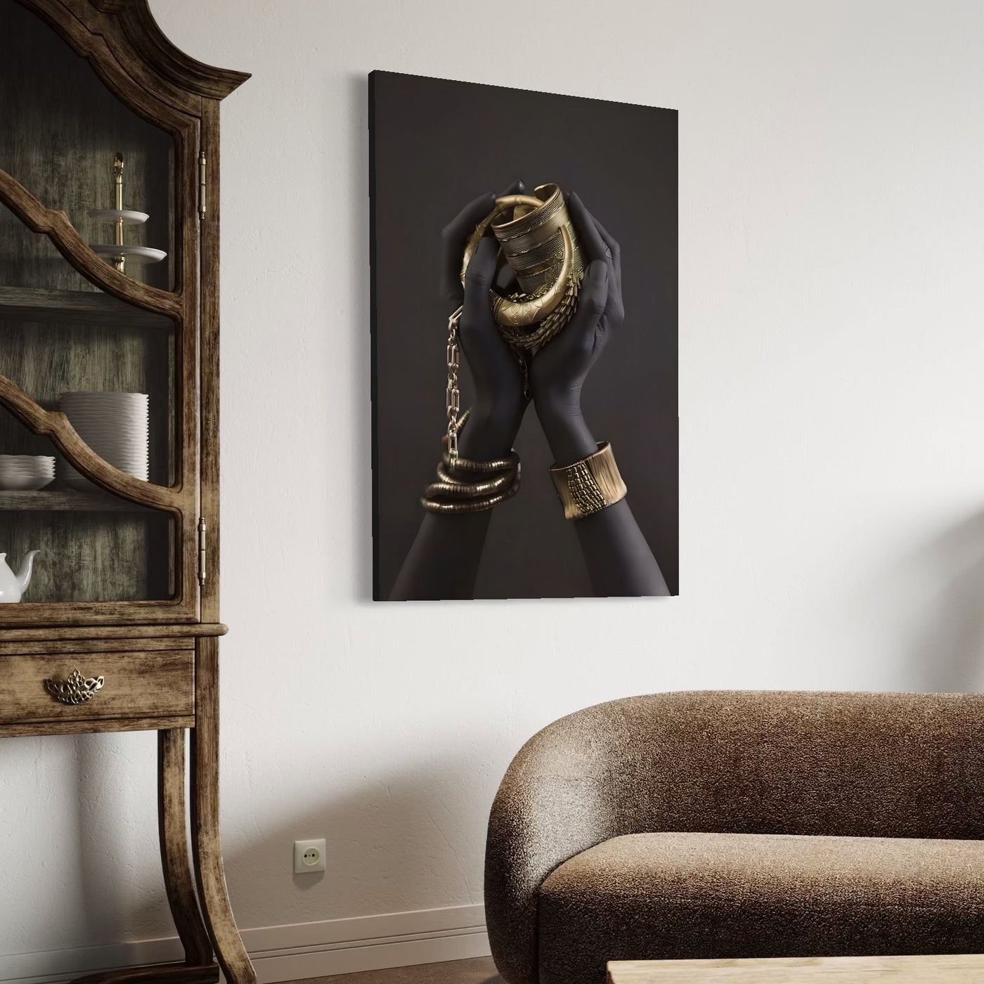 Tablou Canvas Premium LuxCanva® A1440, Maini Aurii , Decorativ, Bijuterii, Palme, Room, Culori Vibrante - 45 X 70