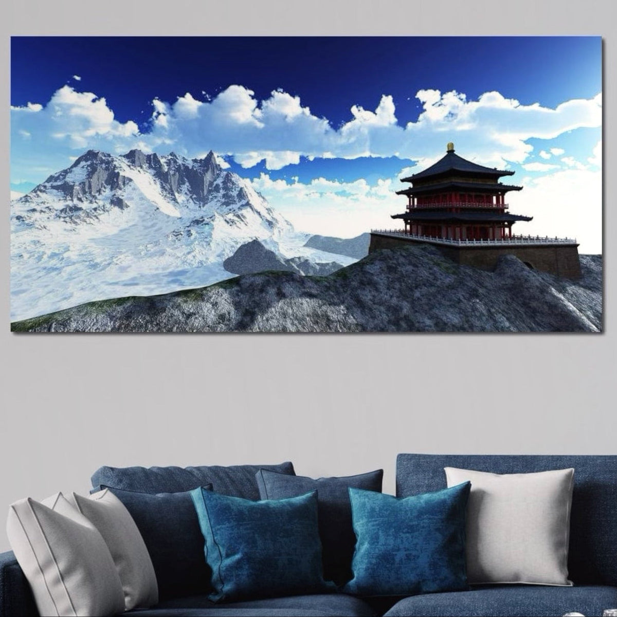 Tablou Canvas Premium LuxCanva® I100, Sanctuarul din Varf, Buddha, Templu, Munti, Zen, Meditatie, Liniste, Natura, Spiritualitate, Refugiu, Echilibru, Living, Dormitor - 40 X 80