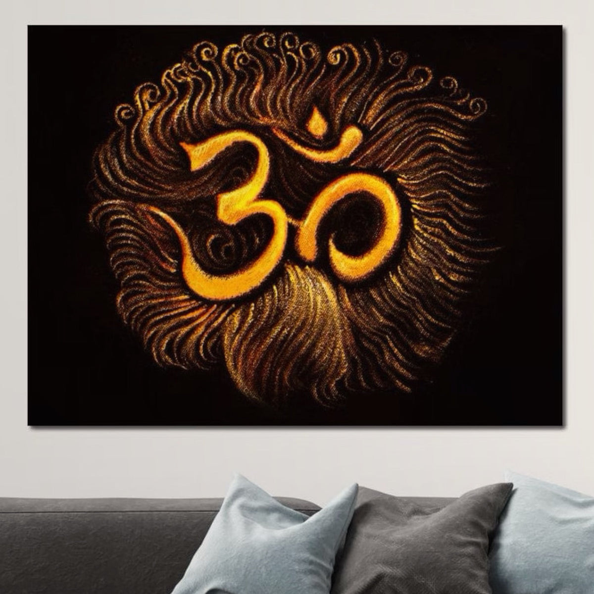 Tablou Canvas Premium LuxCanva® I106, Puterea OM, Meditatie, Zen, Spiritualitate, Energie, Vibratie, Chakra, Univers, Aur, Iluminare, Simbol Sacru, Living, Dormitor