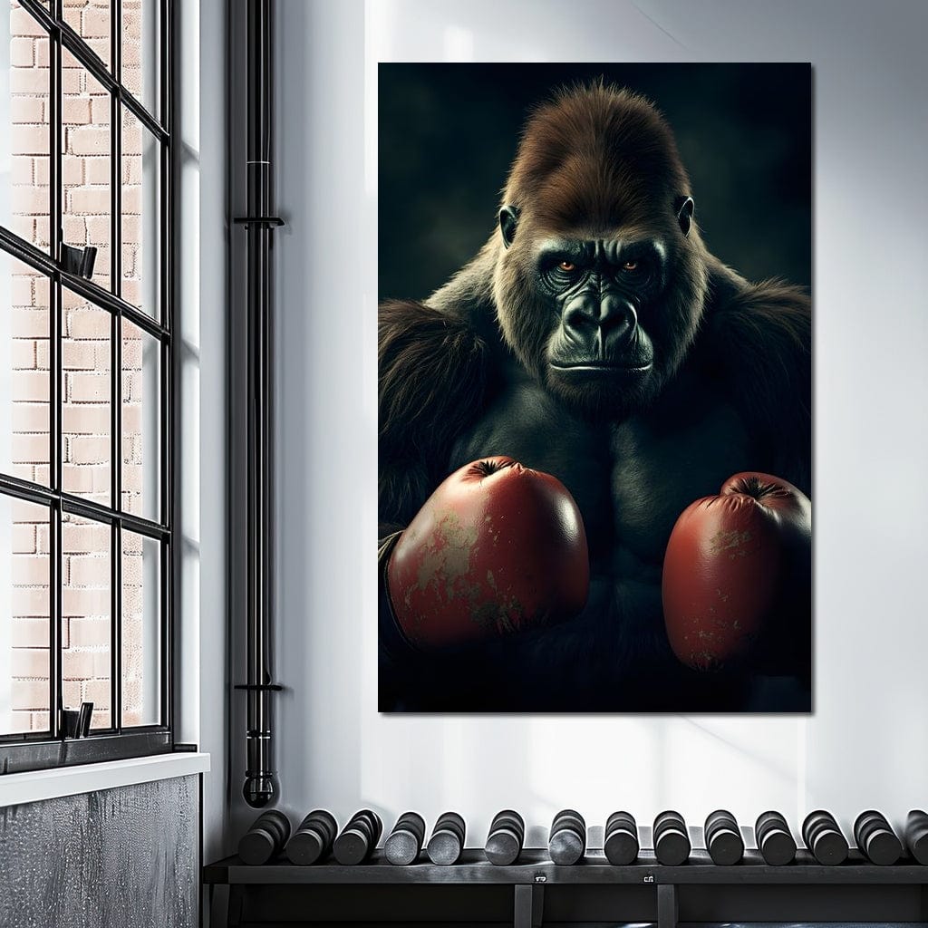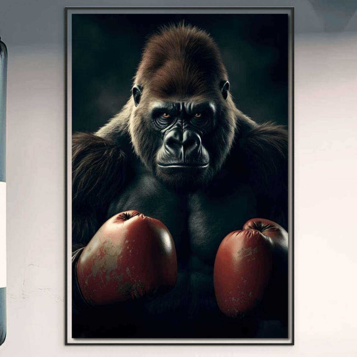 Tablou Canvas Premium, LuxCanva® M1328, Bestia cu Manusi, Boxer, Luptator, Campion, Puternic, Gorila, Primata, Animal, Knockout, Pumn, Manusi, Sport, Birou, Living, Camera Copil - 60 X 90 / Doar Sasiu Lemn / Normala