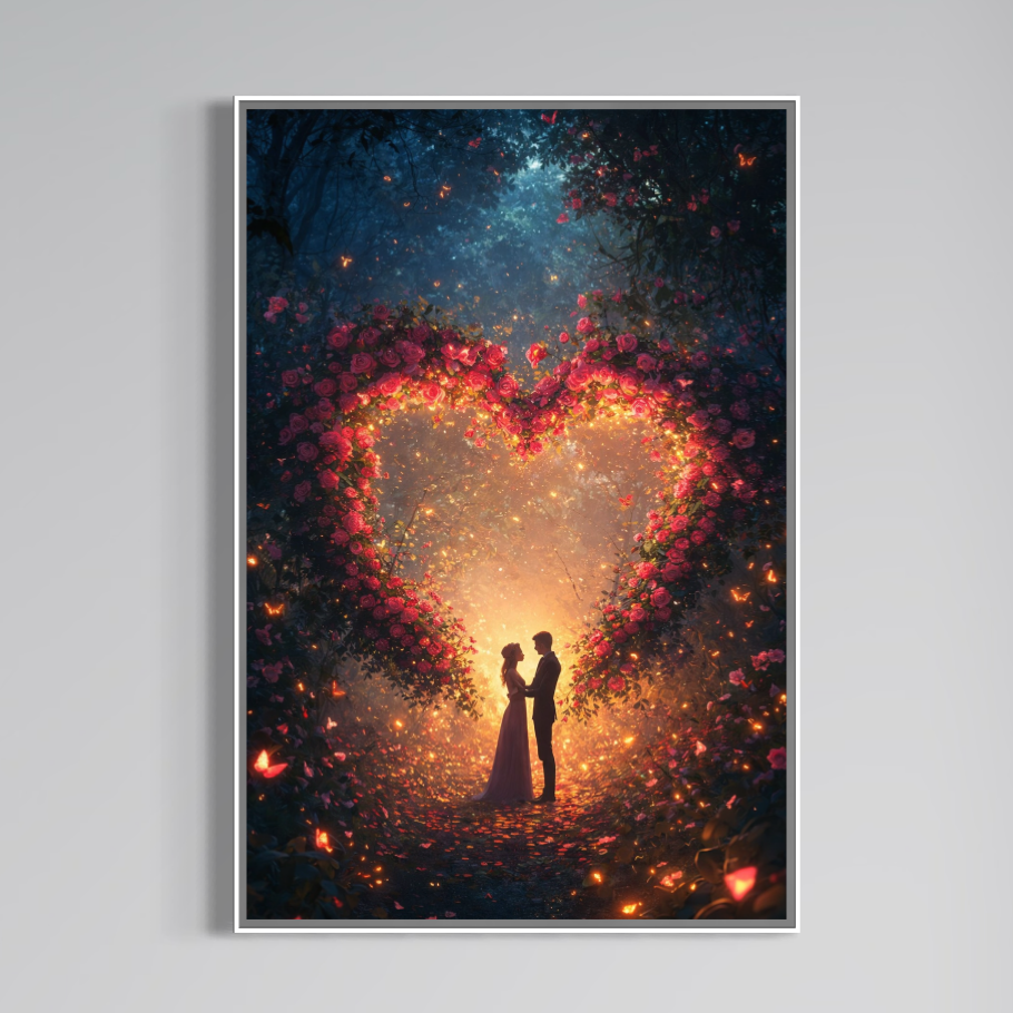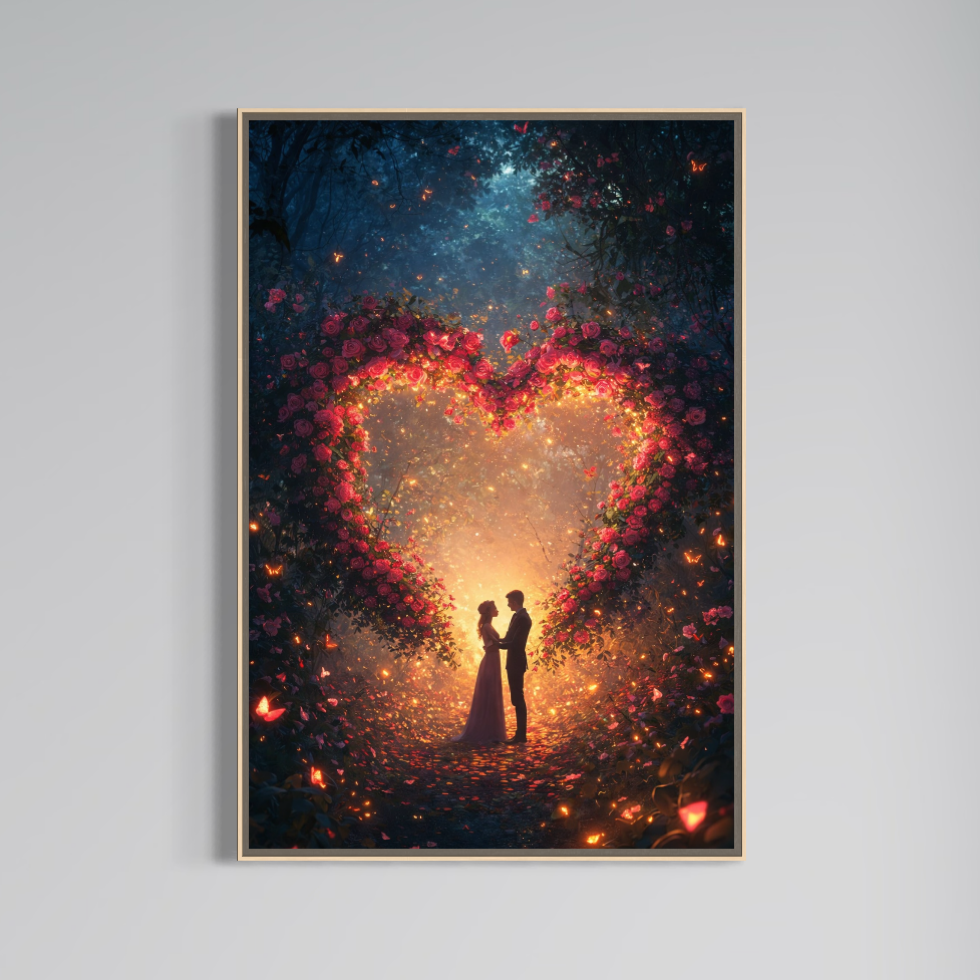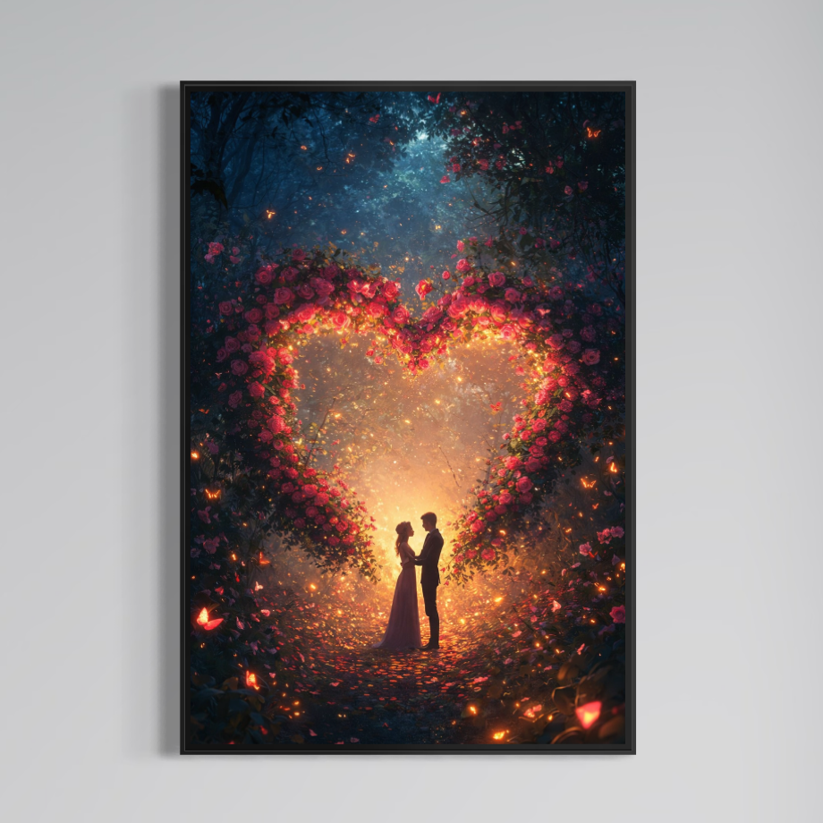 Tablou Canvas Premium, LuxCanva® E1064, Sub Coroana Iubirii, Dragoste, Inima, Iubire, Flori, Legamant, Ritual, Padure, Magie, Juramant, Logodna, Scantei, Arta, Living, Dormitor - 40 X 60