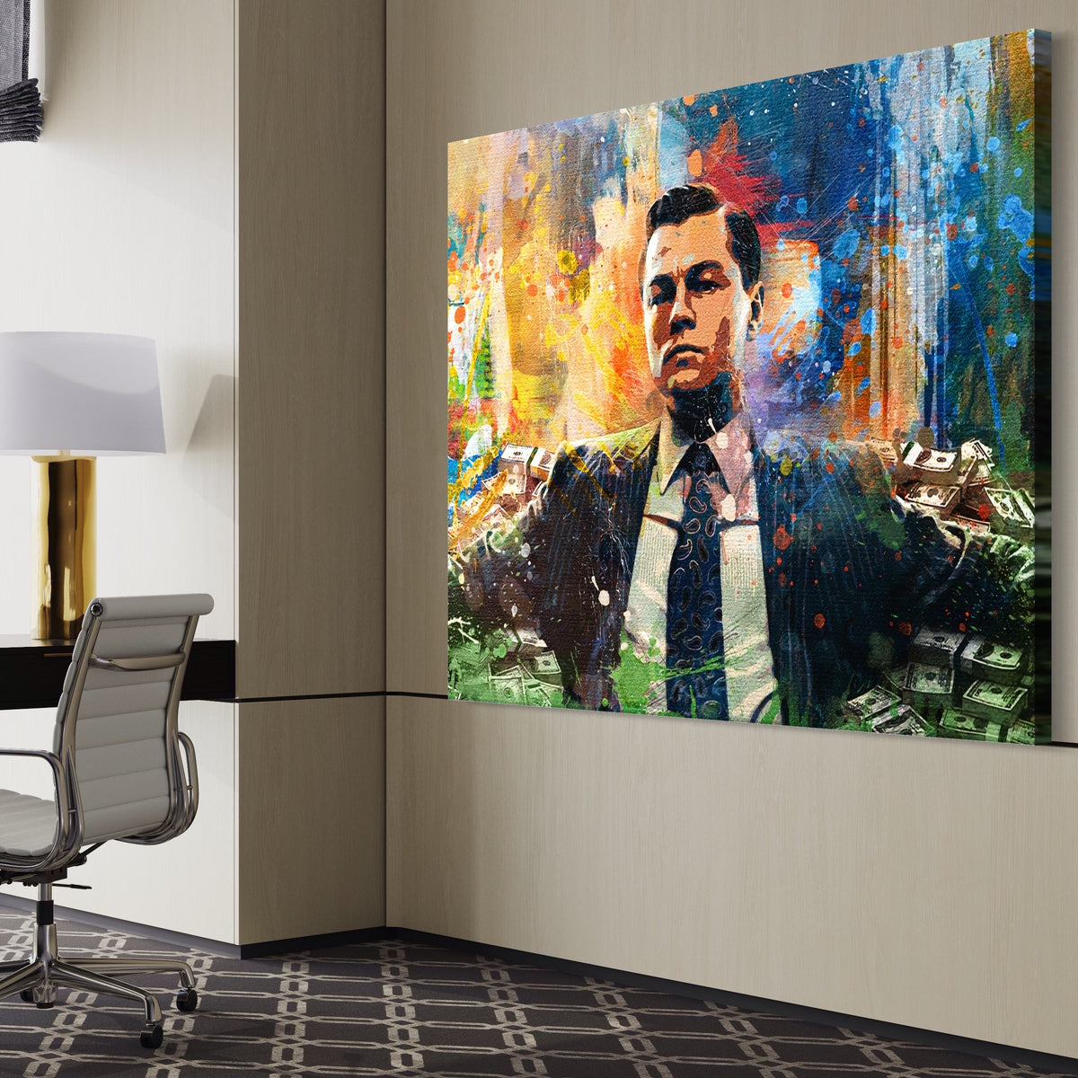 Tablou Canvas Premium LuxCanva® A1172, Money Men , Motivational, Living, Birou, Bani, Leonardo DiCaprio, Culori Vibrante - 45 X 60