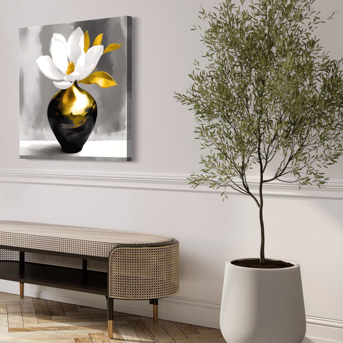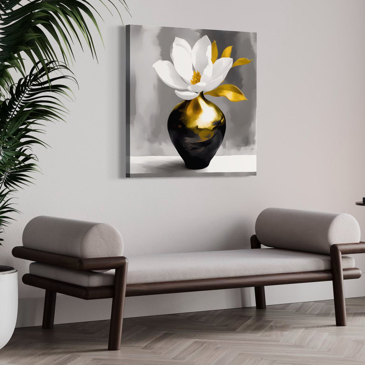 Tablou Canvas Premium LuxCanva® A1576, Armonie In Culori , Living, Floare, Vaza, Auriu, Planta, Room, Culori Vibrante - 50 X 50