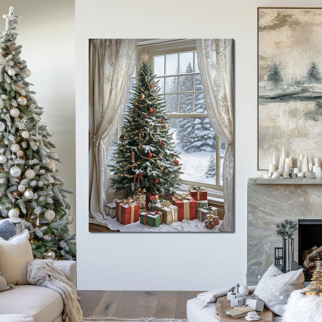 Tablou Canvas Premium LuxCanva® D1004, Brad de Craciun , Relaxare, Family, Sarbatori, Living Room, Globuri, Culori Vibrante - 60 X 80