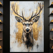 Tablou Canvas Premium, LuxCanva® M1243, Coarne de Aur, Mamifer, Portret, Auriu, Privire, Cerb, Coarne, Animal, Elegant, Texturat, Salbaticie, Fauna, Birou, Living, Camera Copil - 40 X 60