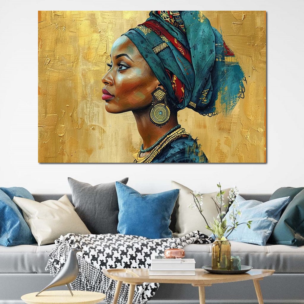 Tablou Canvas Premium, LuxCanva® G1126, Regina din Nisipuri, African, Regal, Turban, Traditie, Cultura, Identitate, Gold, Etnic, Mostenire, Living, Dormitor - 40 X 60