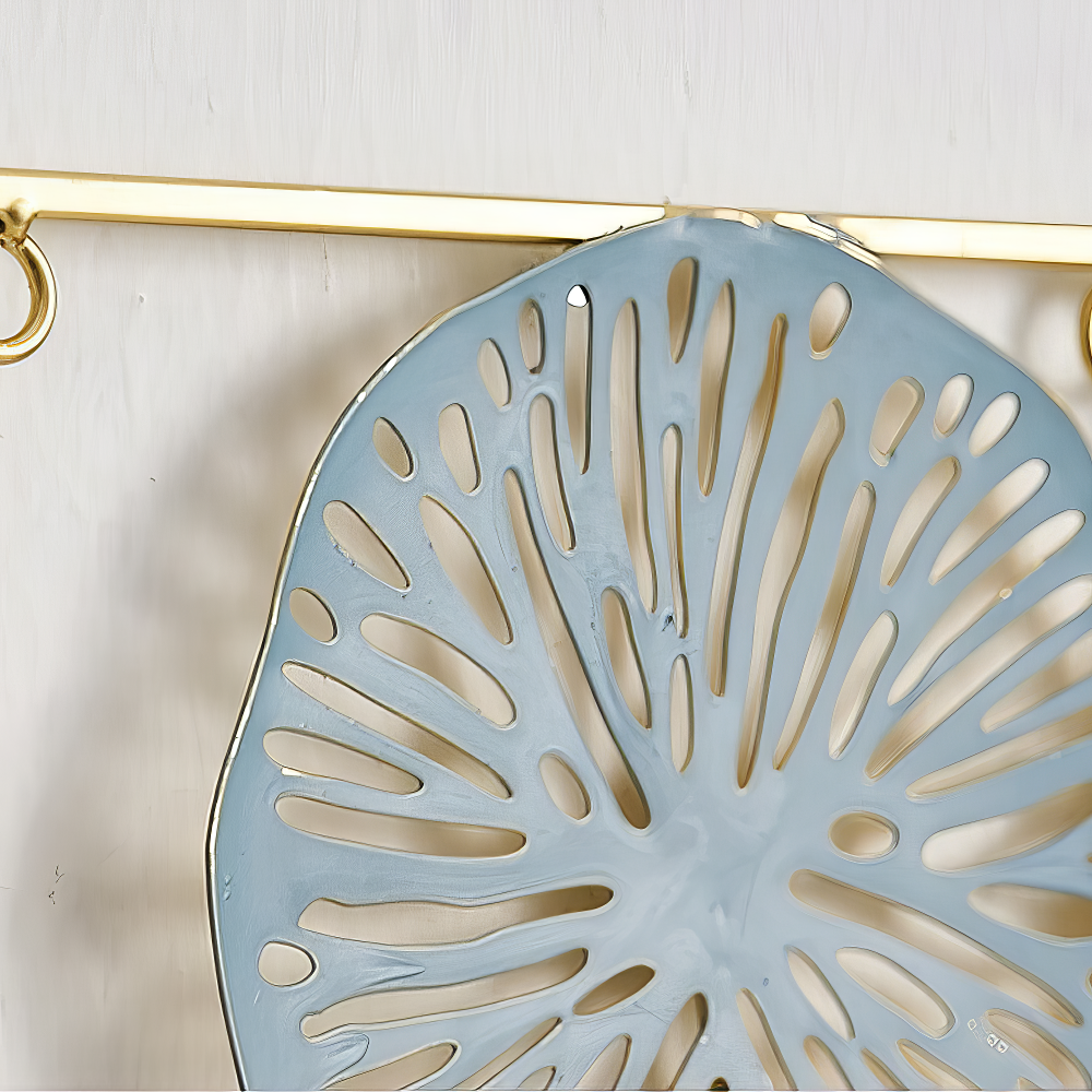 Decoratiune Metalica de Perete LuxCanva® BloomFrame A2920, din Metal, Verticala, Albastru, Auriu, Argintiu, 22 × 60 x 2 cm
