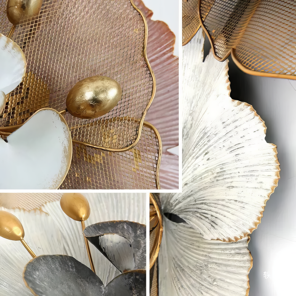 Decoratiune Metalica de Perete LuxCanva® CrystalBloom A2025M Roz, din Metal, Orizontala, Roz, Auriu, Gri, Dimensiune Mare 160 x 64 cm