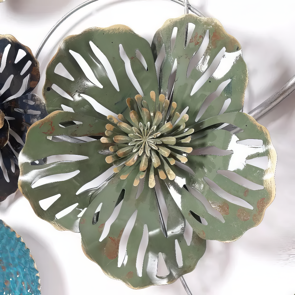 Decoratiune Metalica de Perete LuxCanva® OceanWhisper A0391, din Metal, Orizontala, Albastru, Auriu, Alb, Negru, Dimensiune Mare 157 x 70 x 7 cm