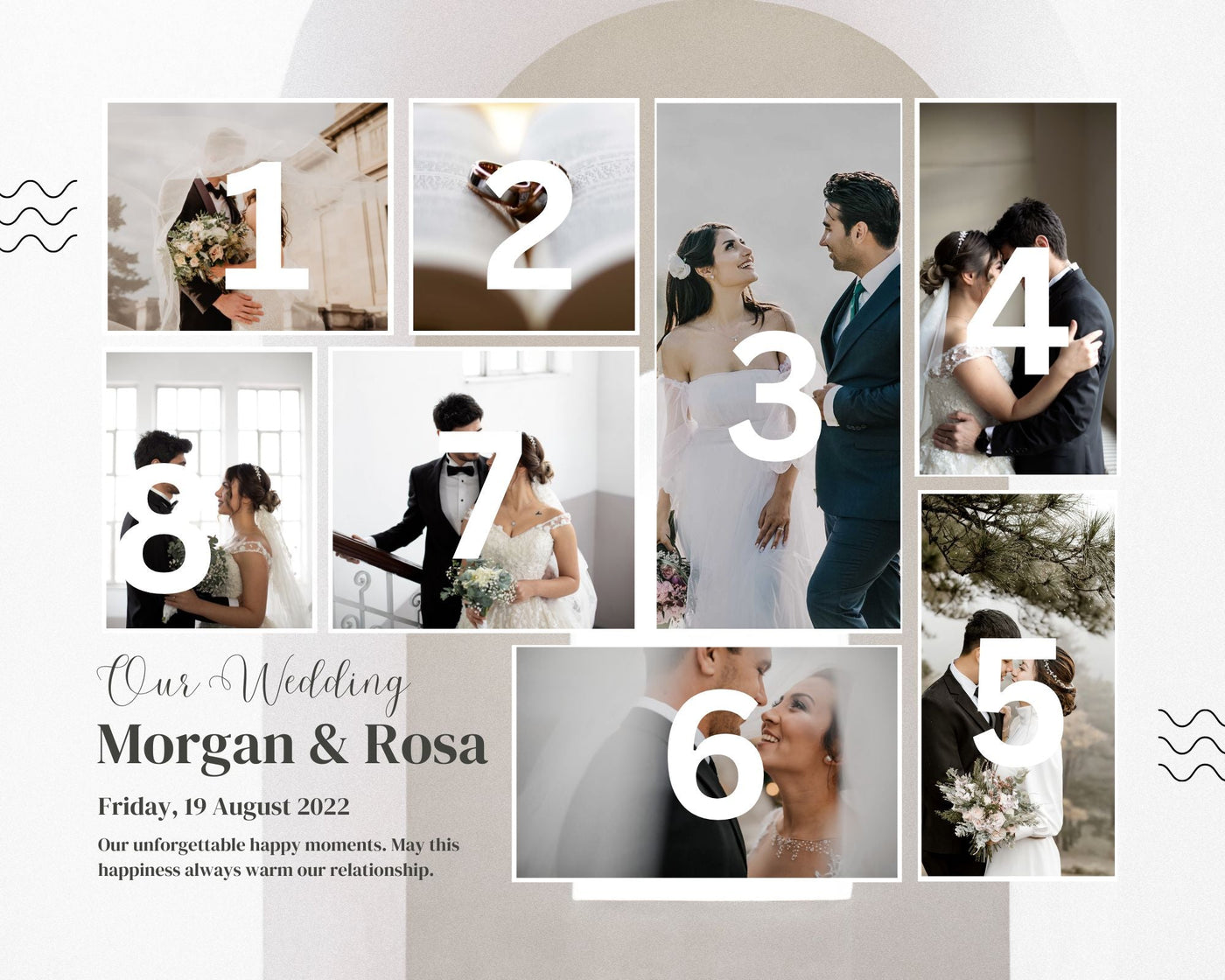 Tablou Canvas Personalizat cu 8 Poze Pentru Nunta "Our Wedding", PS210