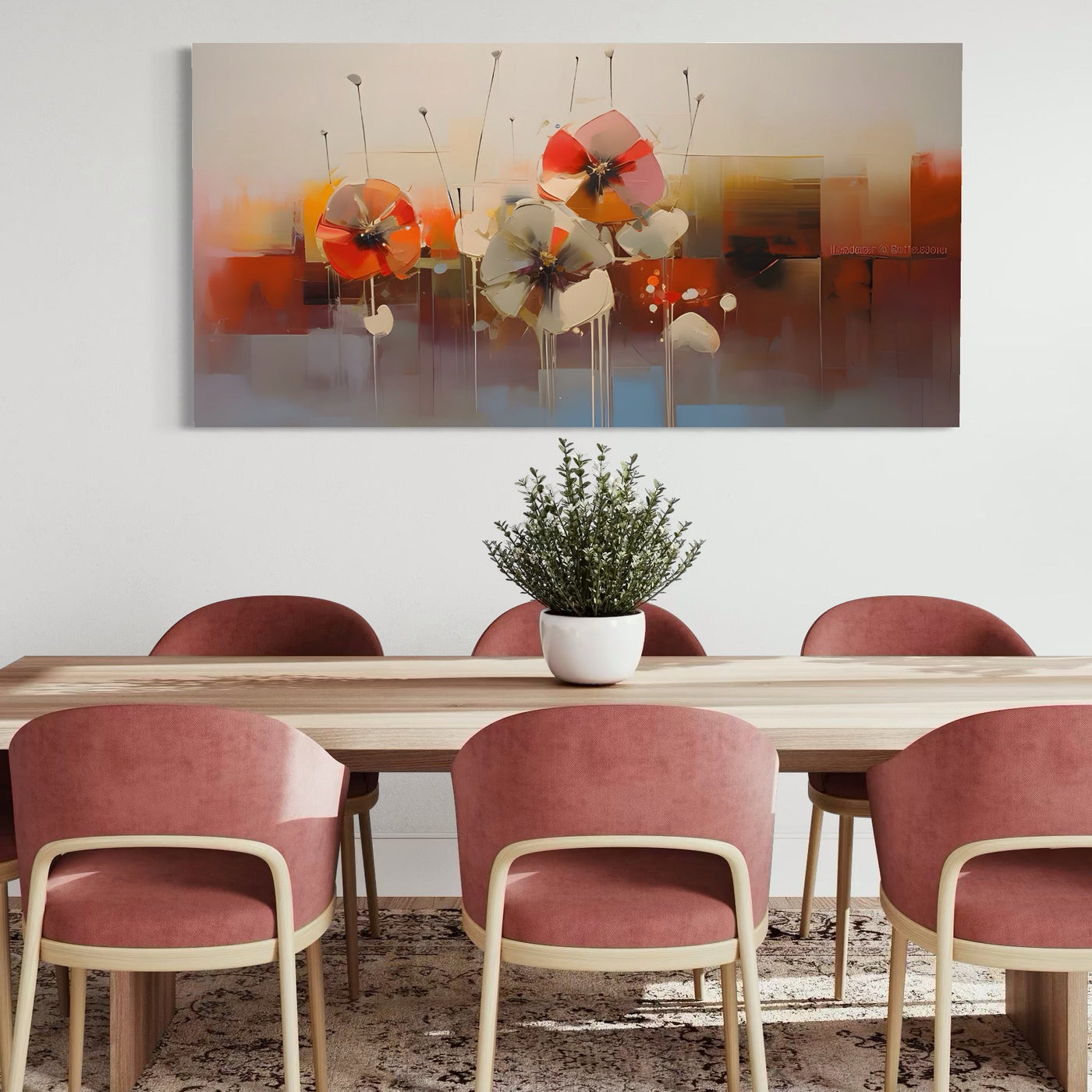 Tablou Canvas Premium LuxCanva® A1376, Painted Flowers , Dormitor, Flori, Pictura, Natura, Decorativ, Living, Culori Vibrante - 50 X 100