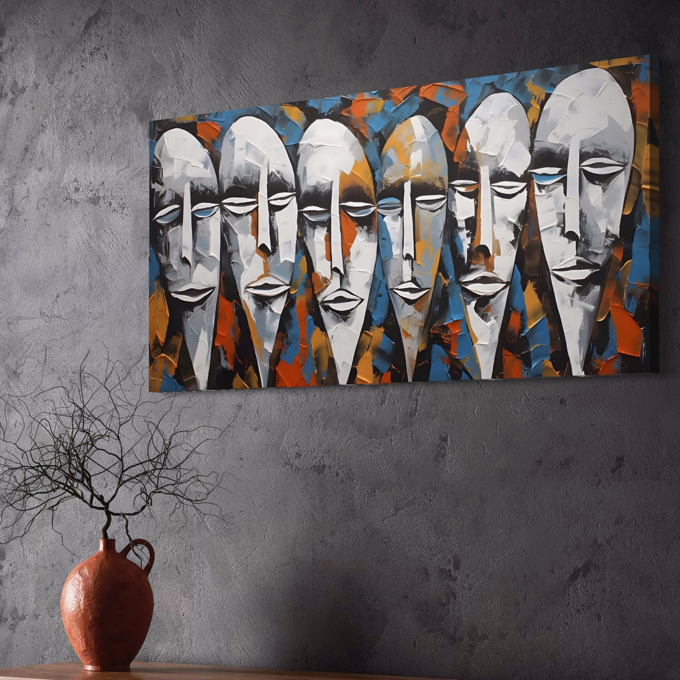 Tablou Canvas Premium LuxCanva® A1381, Masti , Galerie De Arta, Oameni, Arta Moderna, Abstract, Living, Culori Vibrante - 50 X 100