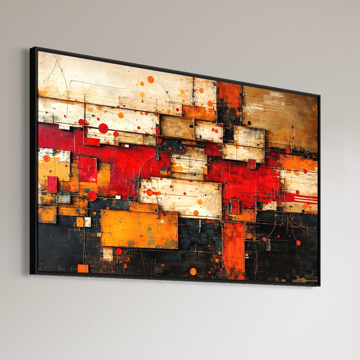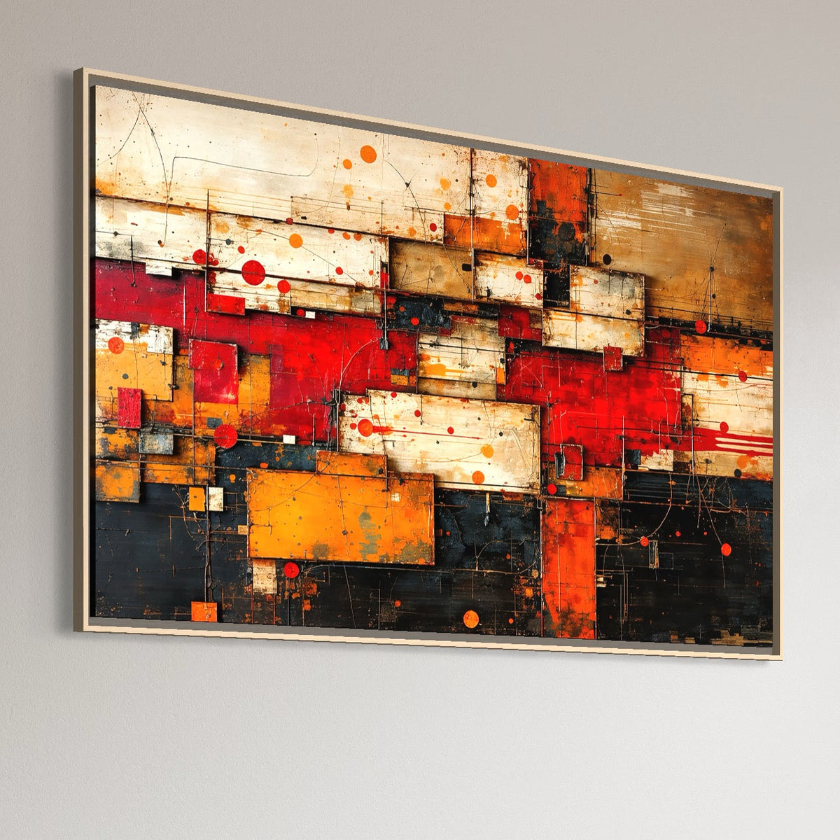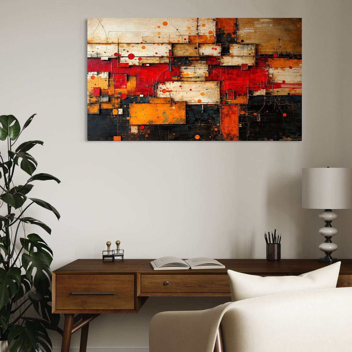 Tablou Canvas Premium, LuxCanva® C1280, Straturi de foc si tacere, Geometrie, Culori, Abstract, Rosu, Ziduri, Foc, Contrast, Urban, Inflacarat, Zgomot, Materie, Arhitectura, Birou, Living, Dormitor - 40 X 70
