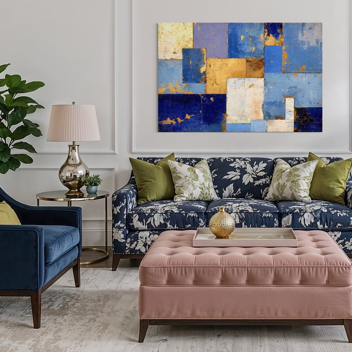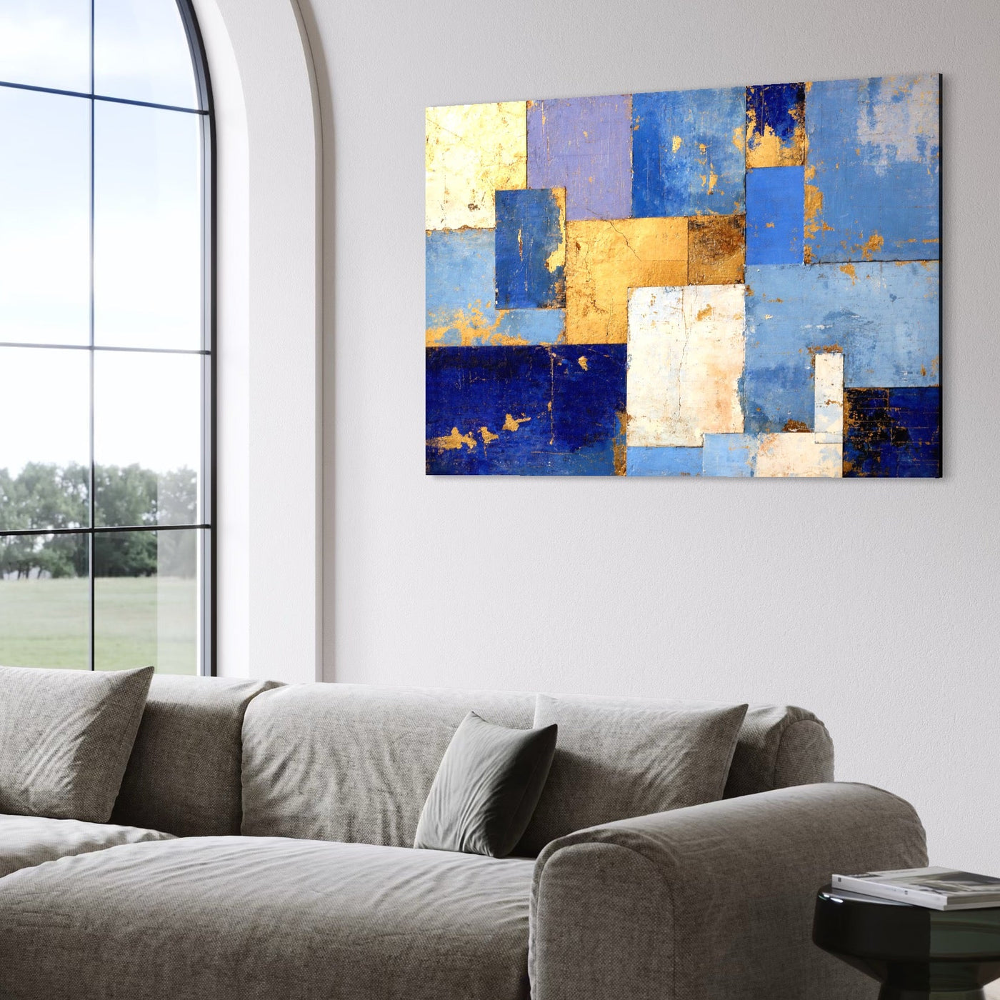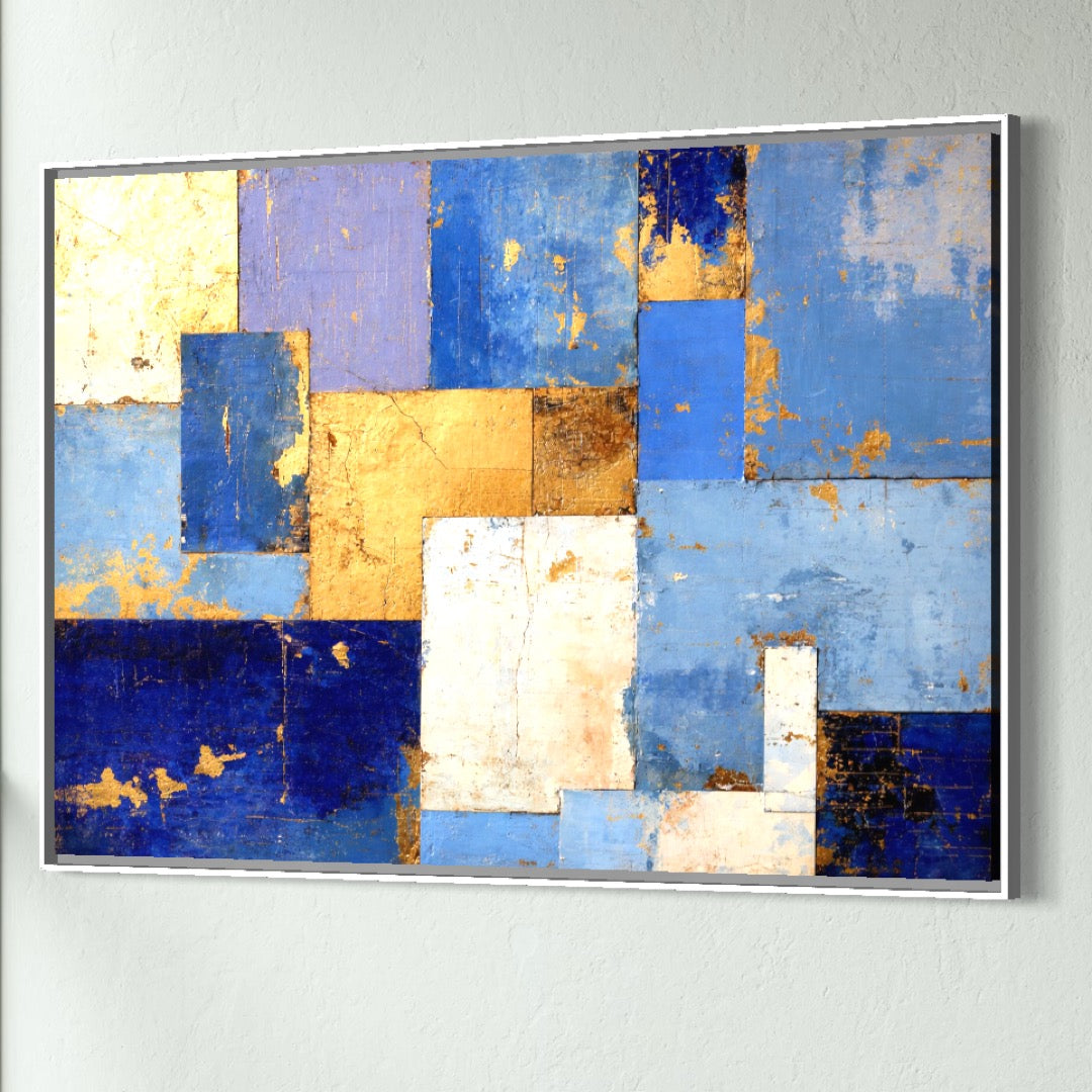 Tablou Canvas Premium, LuxCanva® C1283, Aurul linistii albastre, Geometrie, Culori, Abstract, Albastru, Galben, Contrast, Delicatete, Pace, Seninatate, Estetica, Expozitie, Birou, Living, Dormitor - 40 X 60