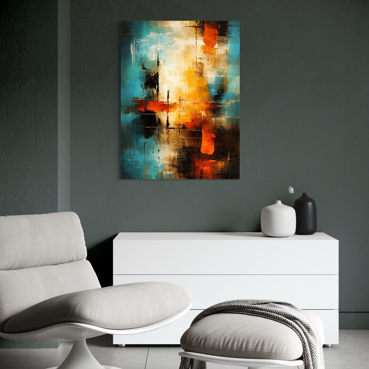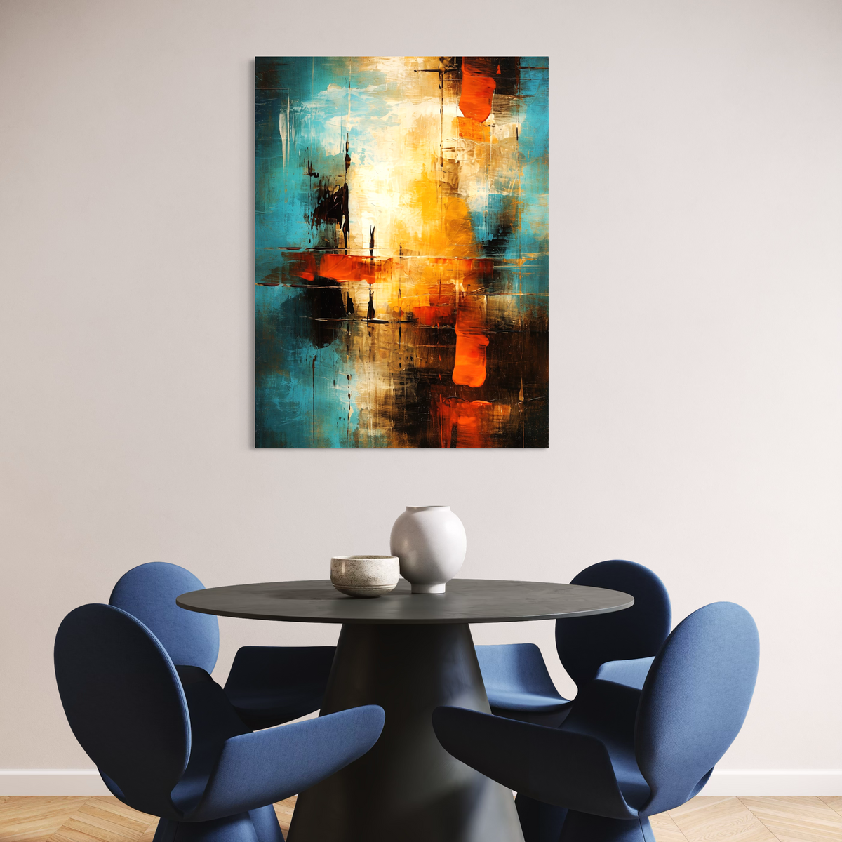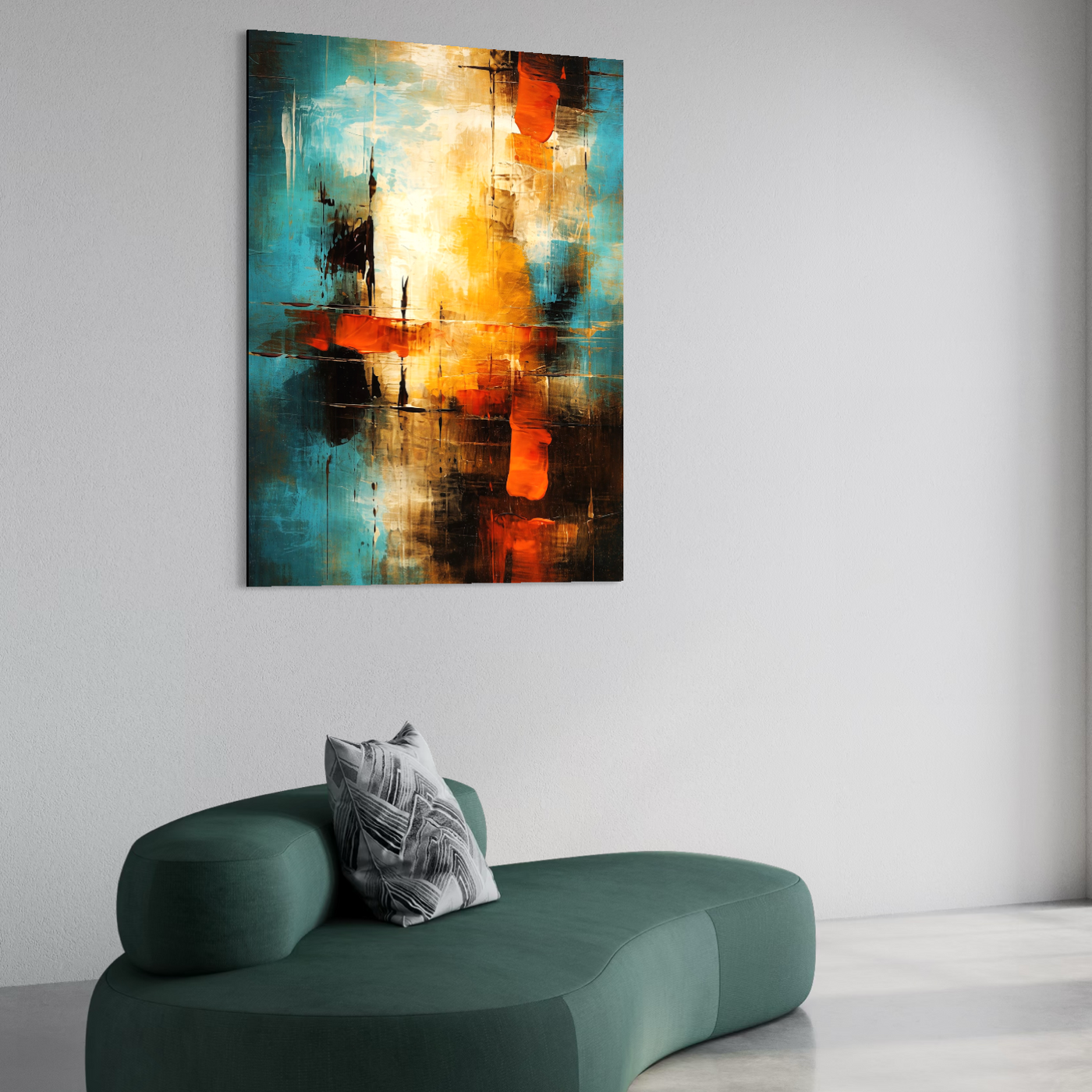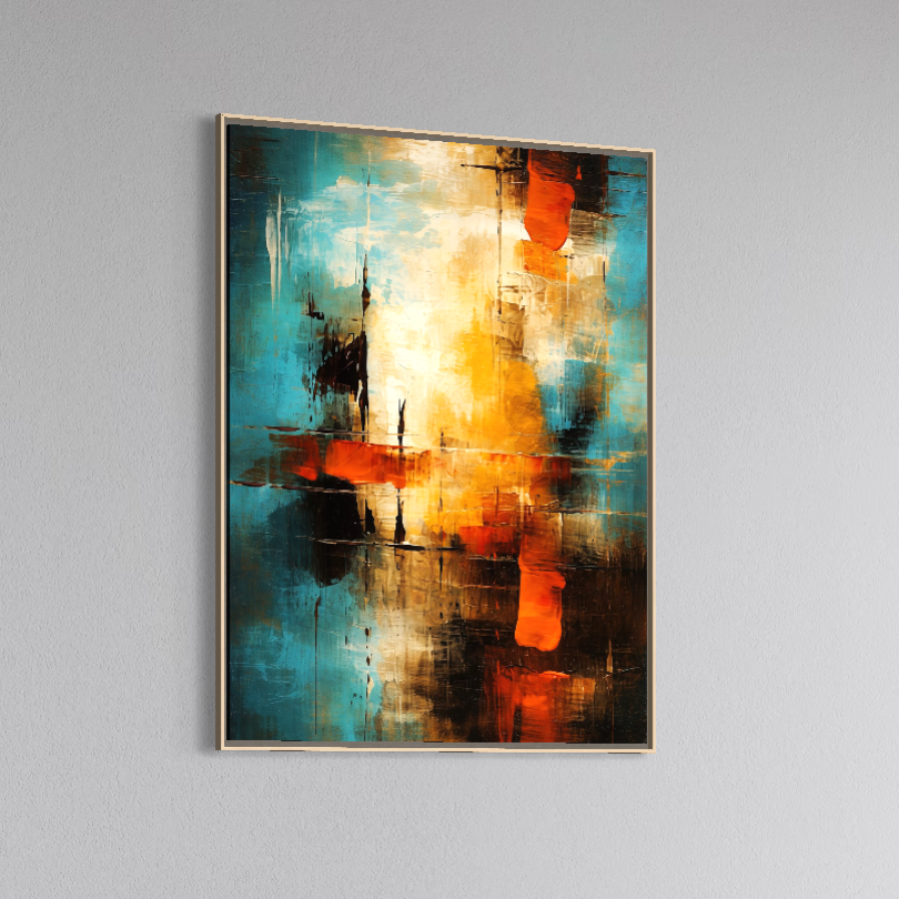 Tablou Canvas Premium, LuxCanva® C1315, Ardere Lenta, Culori, Abstract, Dinamism, Modern, Portocaliu, Rosu, Albastru, Mare, Vapoare, Fereastra, Cer, Arhitectural, Ziduri, Birou, Living, Dormitor - 45 X 60