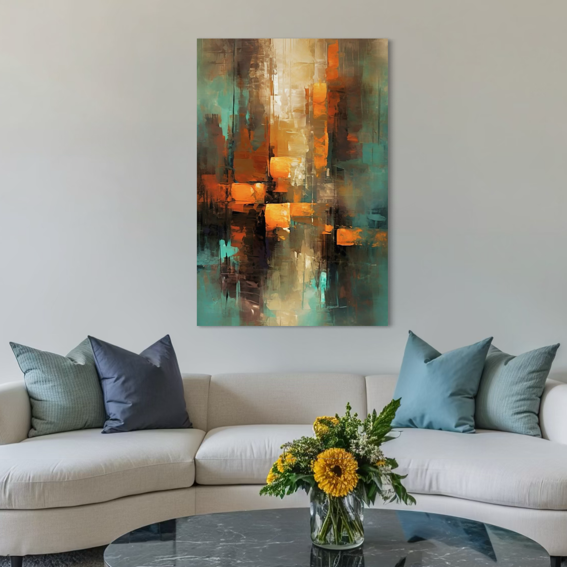 Tablou Canvas Premium, LuxCanva® C1316, Fragmente de Amurg, Culori, Abstract, Dinamism, Modern, Portocaliu, Lumina, Soare, Feerie, Poveste, Cer, Arhitectural, Ziduri, Birou, Living, Dormitor - 40 X 60