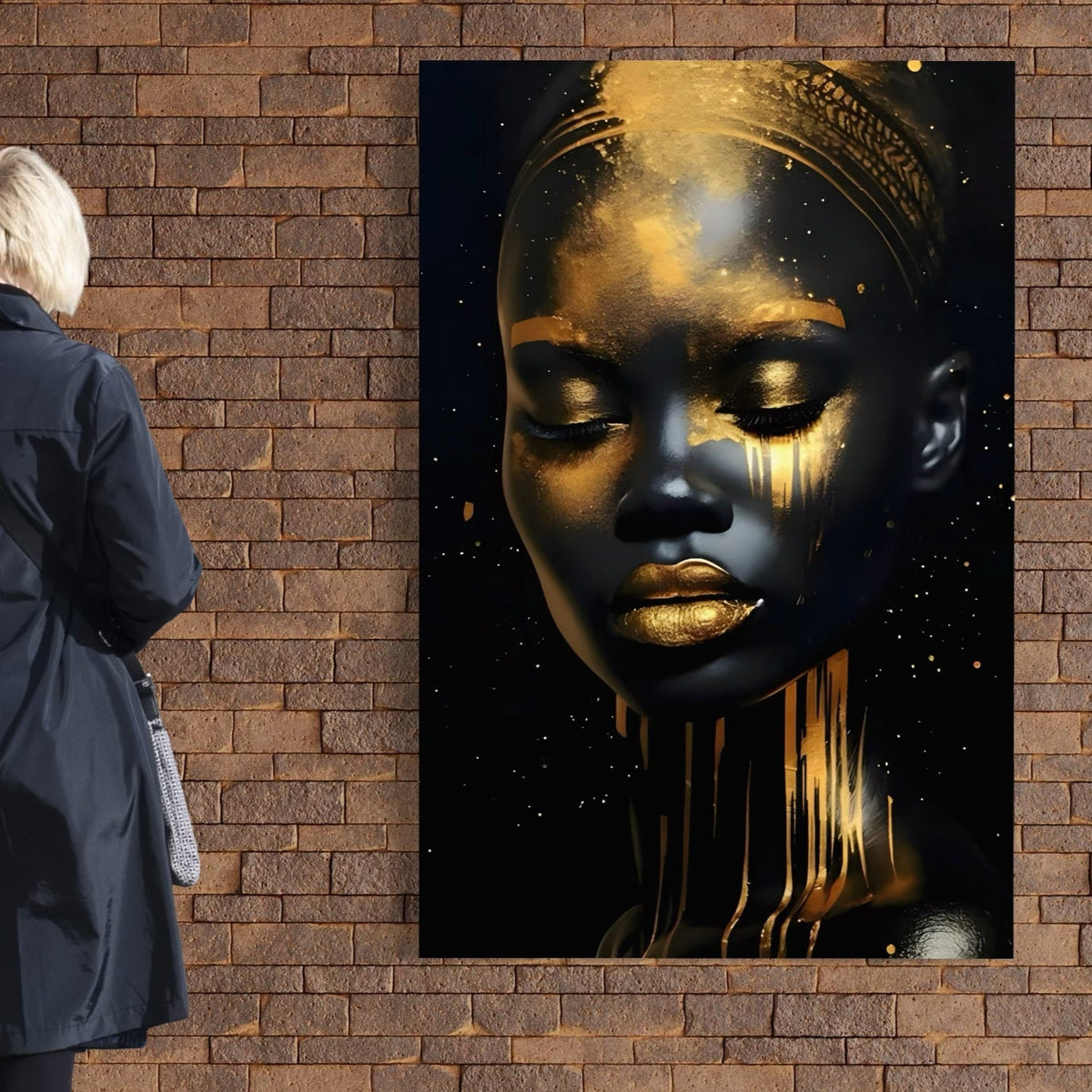 Tablou Canvas Premium LuxCanva® C1169, African Beauty Covered In Gold , Culori, Girl, Beauty, Living Room, Bar, Relaxare, Culori Vibrante - 70 X 100