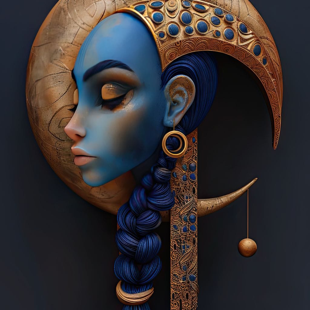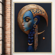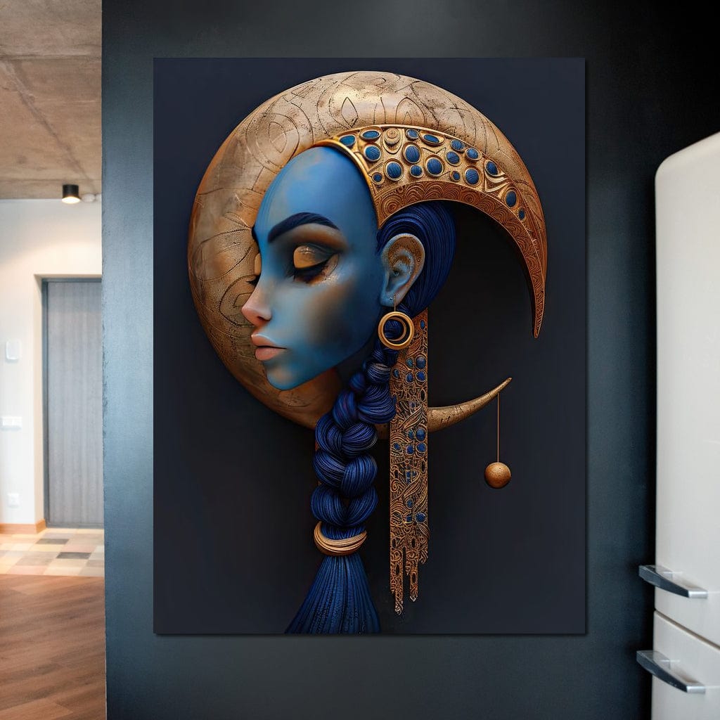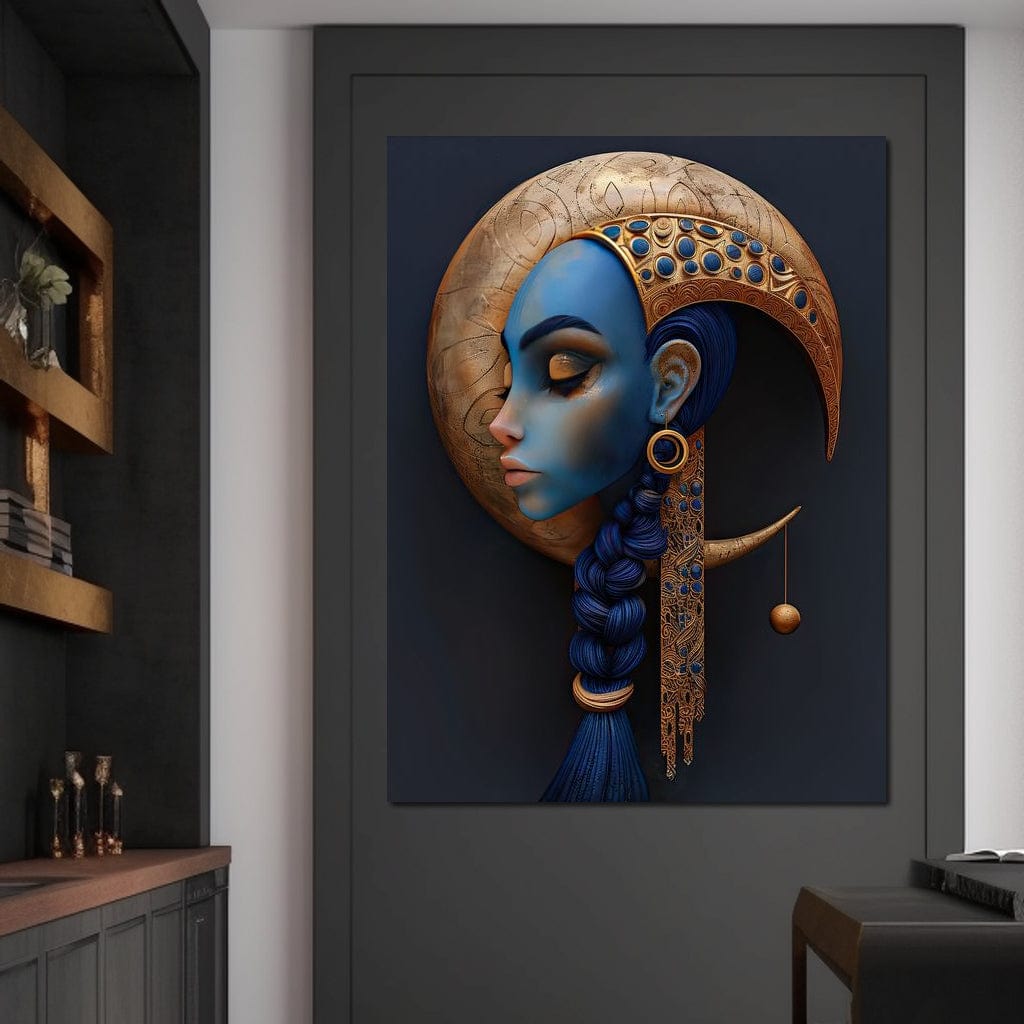 Tablou Canvas Premium, LuxCanva® G1108, Femeia Cosmica, Luna, Safir, Albastru, Univers, Regal, Spirit, Noapte, Mistic, Fantasy, Living, Dormitor - 45 X 60