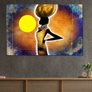 Tablou Canvas Premium LuxCanva® GL1071, Femeia Solara , Soare, Galben, Bijuterii, Apus, Aur, Silueta, Gratie, Trib, Colier, Traditie, Living, Dormitor - 40 X 60