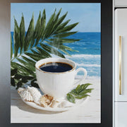 Tablou Canvas Premium, LuxCanva® N1177, Ritual la Tarm, Vacanta, Cozy, Relaxare, Cafea, Exotic, Scoici, Plaja, Cafenea, Pub, Bar, Lounge, Restaurant, Bucatarie