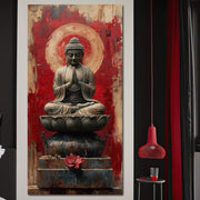 Tablou Canvas Premium LuxCanva® I148, Esenta Zen, Buddha, Zen, Meditatie, Yoga, Lotus, Aura, Spiritualitate, Armonie, Rugaciune, Pace Interioara, Rosu, Living, Dormitor - 40 X 80