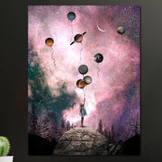 Tablou Canvas Premium, LuxCanva® K1017, Fetita si Planetele, Univers, Maini, Intinse, Planete, Cosmic, Stele, Ganduri, Dorinte, Emotie, Curaj, Sistem, Solar, Galaxii, Pastel, Camera Copii - 45 X 60