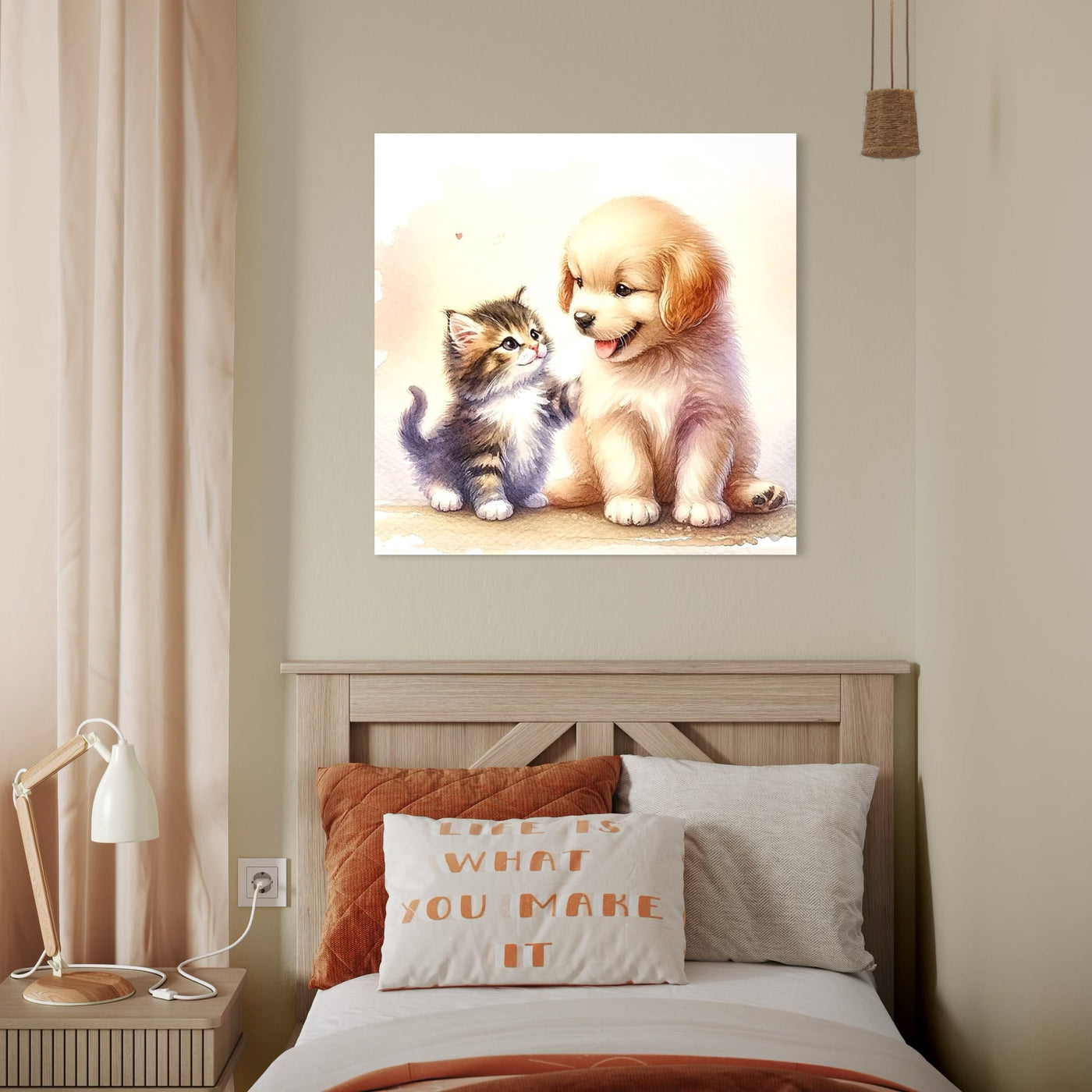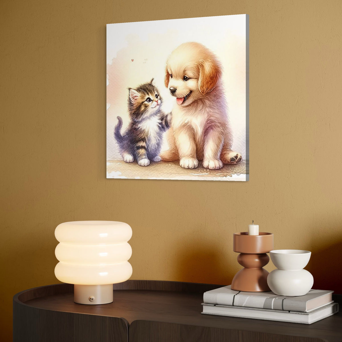 Tablou Canvas Premium, LuxCanva® K1056, Micii Exploratori, Prietenie, Catel, Pisicuta, Joaca, Veselie, Pui, Inocenta, Camera Copil, Dormitor - 50 X 50 / Doar Sasiu Lemn / Normala