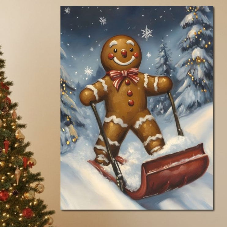 Tablou Canvas Premium, LuxCanva® D1063, Turtita pe Sanie, Omulet, Turta, Dulce, Zapada, Poveste, Lopata, Veselie, Copilarie, Fantezie, Zambet, Basm, Personaj, Iarna, Camera Copil, Living, Dormitor