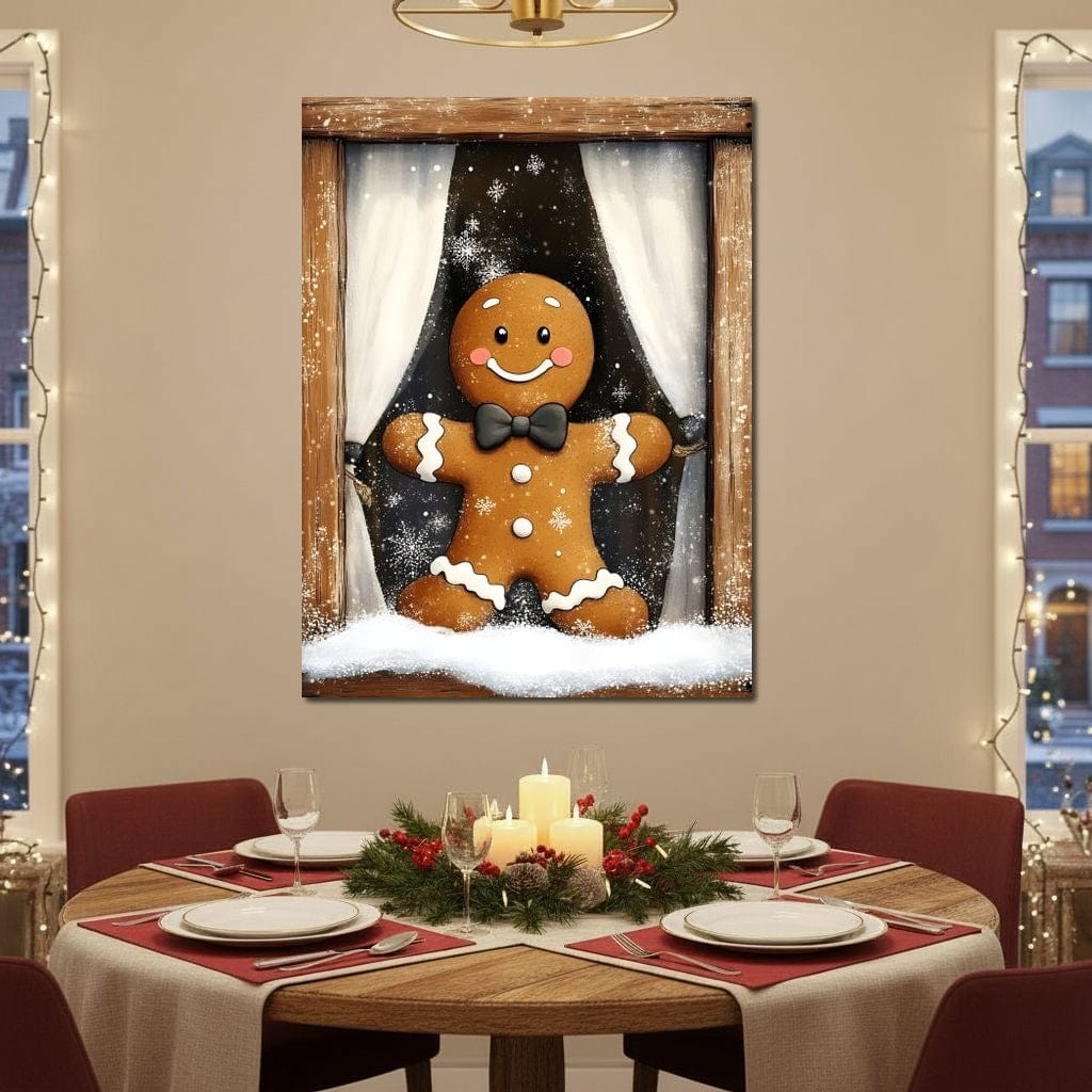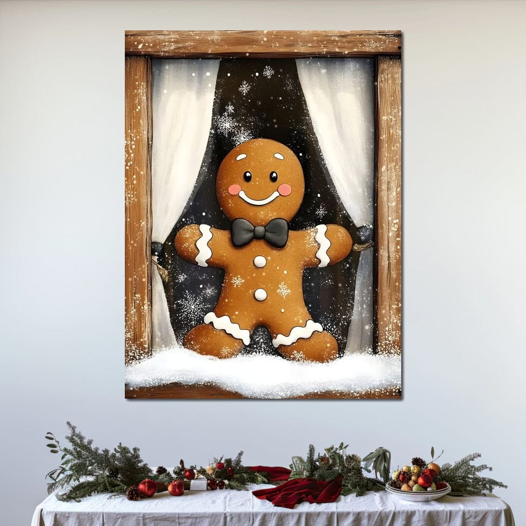 Tablou Canvas Premium, LuxCanva® D1064, Fereastra Magica, Salut, Oaspete, Dulce, Zambet, Geam, Iarna, Omulet, Turta, Dulce, Basm, Surpriza, Bucurie, Noapte, Basm, Camera Copil, Living, Dormitor - 45 X 60 / Doar Sasiu Lemn / Normala