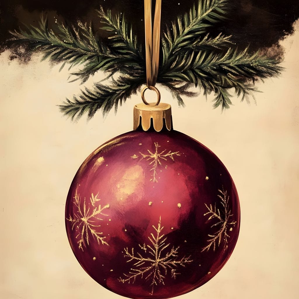 Tablou Canvas Premium, LuxCanva® D1078, Glob Regal, Stralucire, Visiniu, Frumusete, Aur, Rosu, Ramura, Verde, Brad, Podoaba, Iarna, Festiv, Panglica, Atemporal, Clasic, Camera Copil, Living, Dormitor - 45 X 60 / Doar Sasiu Lemn / Normala