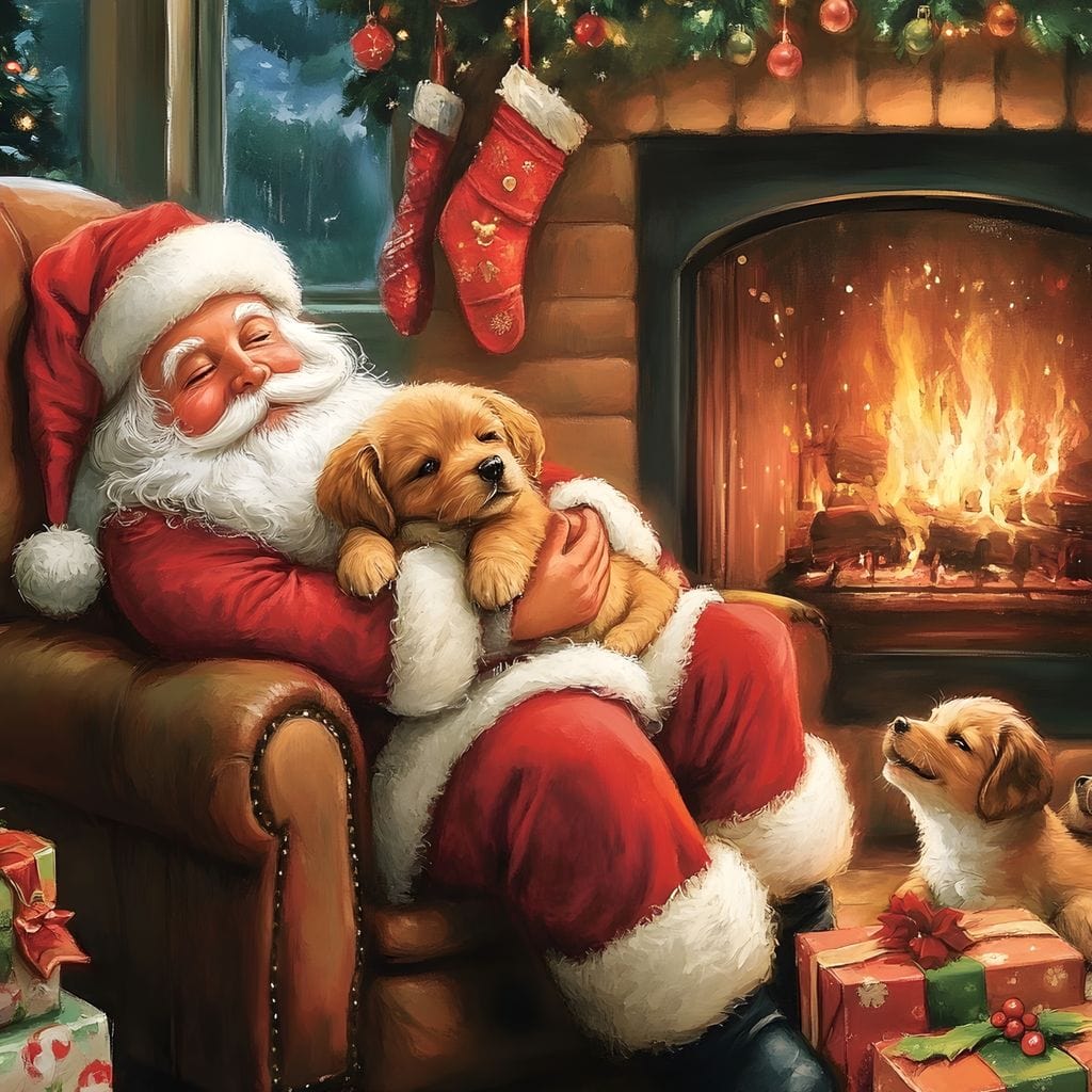 Tablou Canvas Premium, LuxCanva® D1108, Craciunul Perfect, Iarna, Craciun, Catelusi, Blanos, Brad, Mos Craciun, Foc, Semineu, Caldura, Fotoliu, Asteptare, Vis, Bucurie, Living, Dormitor - 45 X 60 / Doar Sasiu Lemn / Normala