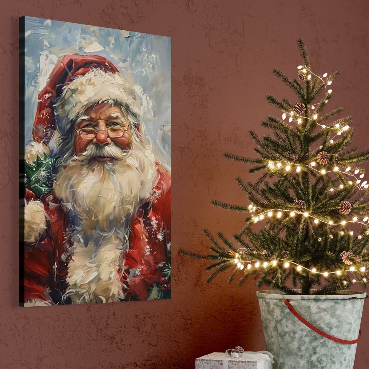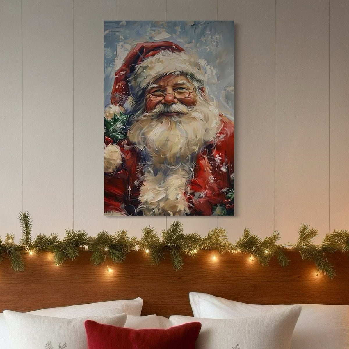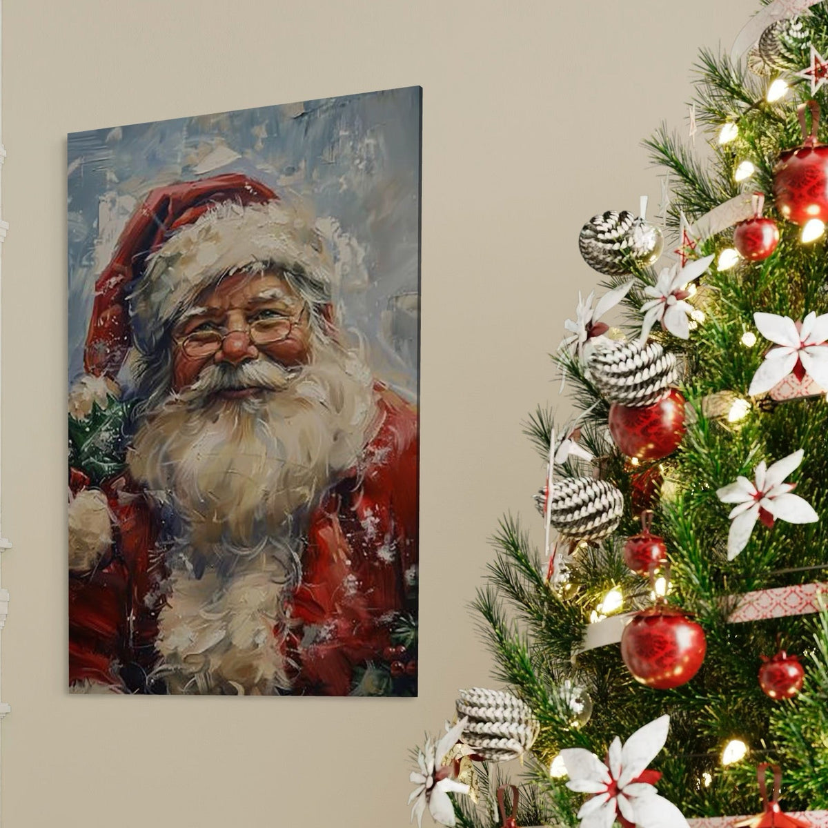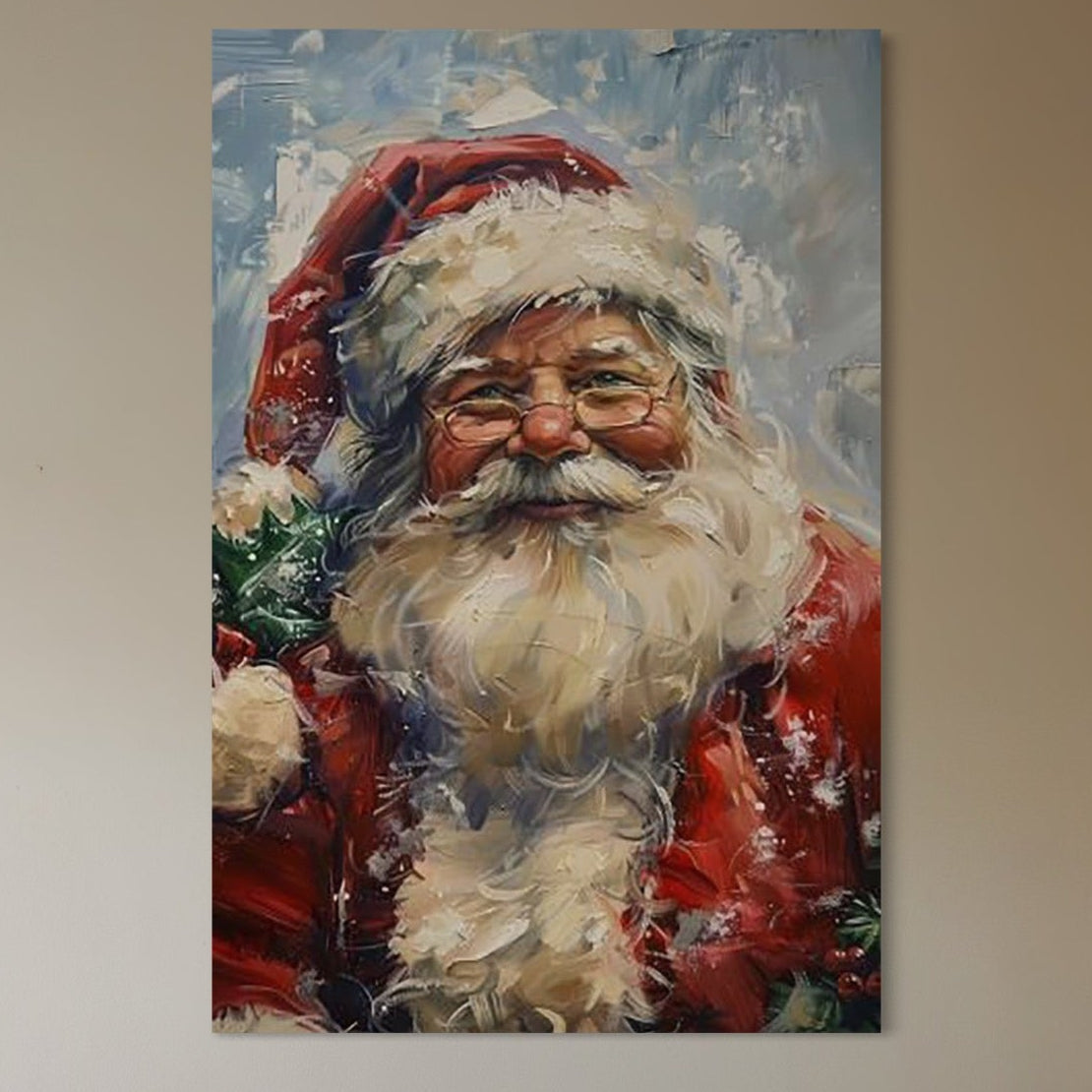 Tablou Canvas Premium, LuxCanva® D1113, Mosul Cel Bun, Zambet, Cadouri, Magie, Ajun, Noapte, Craciun, Brad, Traditie, Sarbatori, Desaga, Costum, Rosu, Barba, Alb, Emotie, Living, Dormitor - 40 X 60 / Doar Sasiu Lemn / Normala