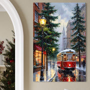 Tablou Canvas Premium, LuxCanva® D1136, Tramvaiul Rosu in Ajun, Iarna, Craciun, Strada, Tramvai, Rosu, Ninsoare, Oras, Urban, Plimbare, Pieton, Stralucire, Lampi, Living, Dormitor - 40 X 60 / Doar Sasiu Lemn / Normala