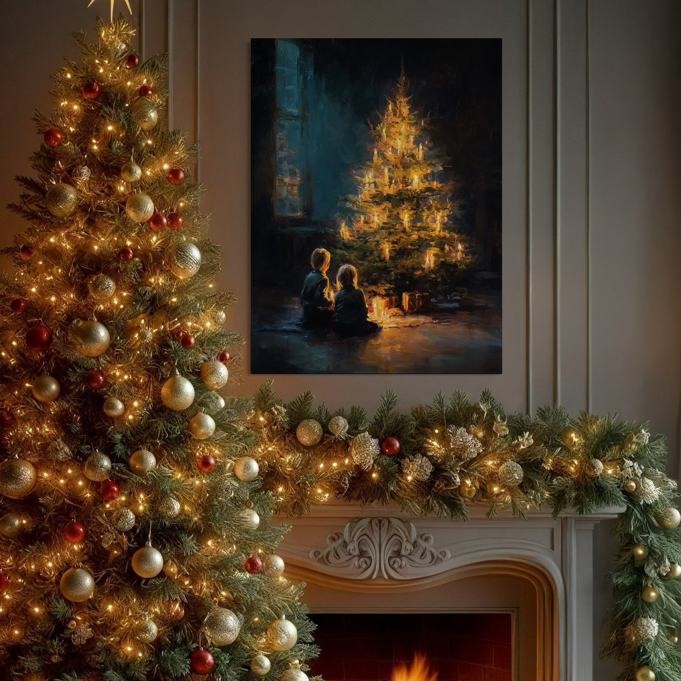 Tablou Canvas Premium, LuxCanva® D1138, Seara In Care Dorintele Se Aprind, Iarna, Sarbatori, Copii, Frate, Sora, Emotie, Asteptare, Mos Craciun, Ajun, Brad, Nostalgie, Living, Dormitor - 45 X 60 / Doar Sasiu Lemn / Normala