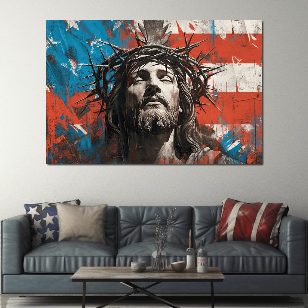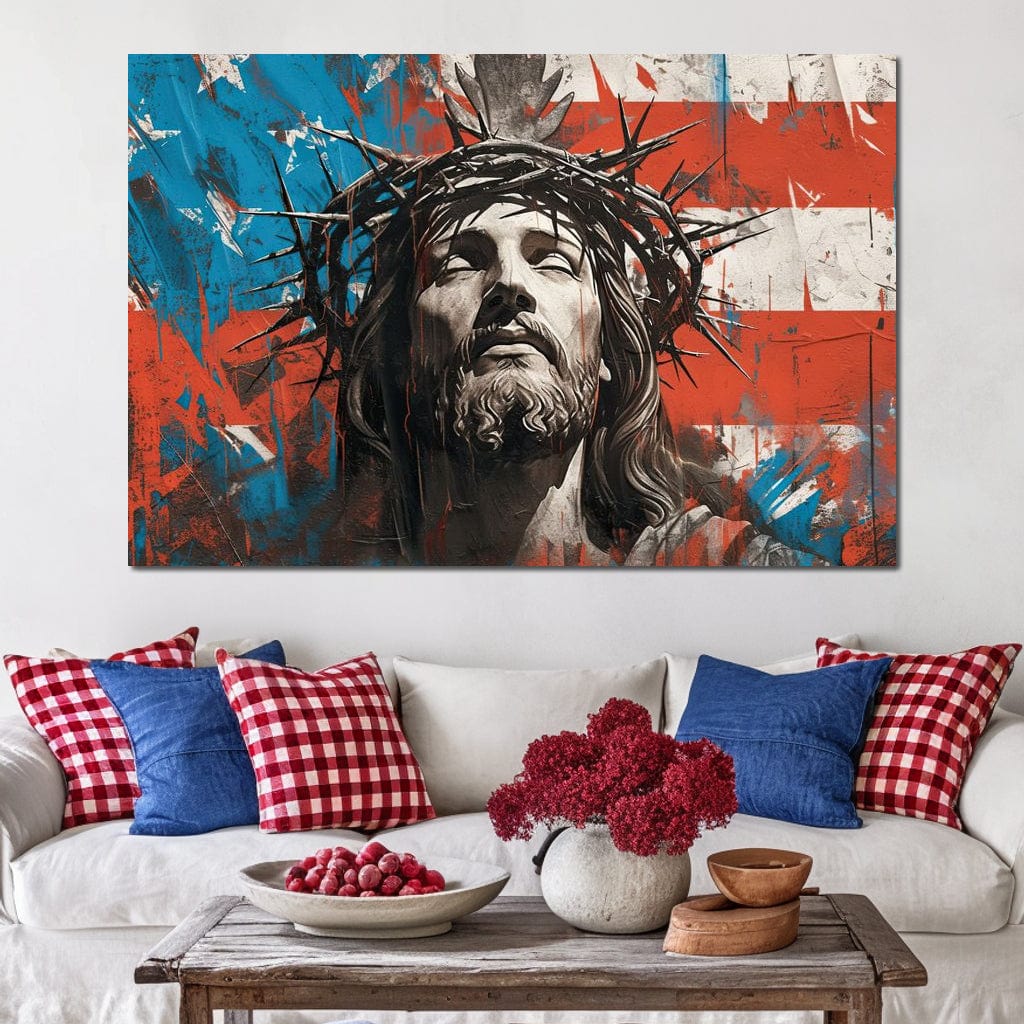 Tablou Canvas Premium LuxCanva® H1046, Sacrificiu si Natiune, Patriotism, Drapel, Libertate, Coroana de Spini, Sacrificiu, Mantuire, Arta Religioasa, Living, Dormitor