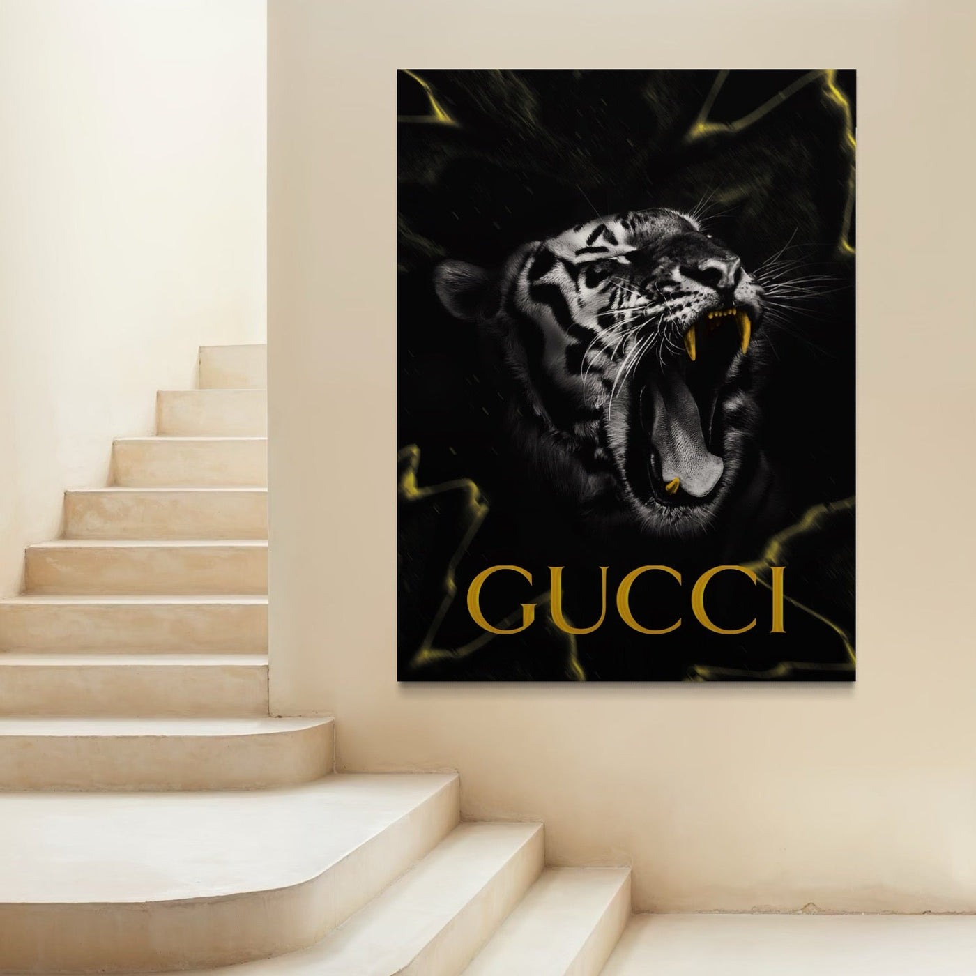 Tablou Canvas Premium, LuxCanva® A1044, Gucci Tiger, Tigru, Lux Brand, Moda, Culori Vibrante - 50 X 70